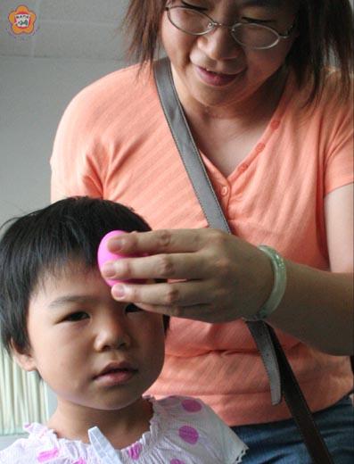 近朱成赤|染紅蛋;提頭知尾|滾紅蛋;絕頂聰明|磕紅蛋;出人頭地|吃紅蛋! 昨天是開學日,安瀾國小幼中班的新生中,有一對是雙胞胎姐妹;他們的父母,在奶奶的叮嚀下,依照舊俗,準備了紅蛋,並在教室中舉行了入學啟蒙儀式。 據安瀾國小的人事員莊寶石羡表示,金門舊俗,讓孩子在入學時,筆直地滾出紅蛋,意味著寫出一筆好字,或是能在學海中一帆風順,有測試或預知的意味;用額頭敲破蛋殼,則有聰明開竅的意思。