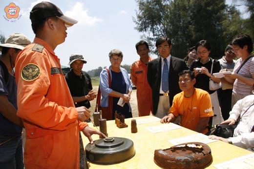 伊甸社會福利基金會昨日在立委吳成典陪同下,率領國際反地雷親善大使等人抵金,除參觀雷區、聽取金指部排雷相關簡報、慰問地區因地雷受傷民眾外,也於下午拜會縣長李炷烽,對長期飽受地雷夢魘的金門、相關除雷情形,表達關心之意。 伊甸社會福利基金會國際發展處副執行長林錦川昨日由立委吳成典陪同,與國際反地雷組織(ICBL)親善大使雷釋先生(Mr. Tun Channareth)、國際反地雷組織諮詢董事及柬埔寨反地雷運動發起人丹妮斯修女(Sister Denise Mary Cologhan)、大愛電視台記者等多人,於中午抵金,在民政局長洪國正、課長沈少明帶引下,前往金沙后扁聽取金指部排雷大隊簡報、參觀雷區;稍後則到金湖鎮成功村慰問因地雷受傷的受害者陳張麗玉,國際反地雷組織親善大使柬埔寨籍的雷釋,還親撫其傷口,關心其生活情形,充份展現愛心無國界的精神。下午並赴縣府拜會縣長李炷烽,於傍晚六時搭機返台。 伊甸社會福利基金會表示,今年是該會加入國際反地雷組織(ICBL)十週年,也是反地雷公約|沃太華公約簽署十週年,十年前有超過一百五十四個國家簽署反地雷公約,承諾完全禁止殺傷性地雷。十年來,該會除積極推動反地雷外,也捐贈給國際間因雷傷而致殘者、以及國內清寒身障兒童輪椅近萬輛。 為慶賀伊甸社會福利基金會國際化十週年,曾代表國際反地雷組織於一九九七年十二月領取諾貝爾和平獎的雷傷親善大使雷釋先生特地來台祝賀,並參與伊甸社會福利基金會舉辦的「飛躍地雷」影片巡迴放映、募款等活動,以籌募更多行動輔具,幫助殘障者恢復行動力。 伊甸社會福利基金會國際發展處副執行長林錦川指出,該會是本土社福團體,也是本土社福團體中參與國際事務最多的組織,更是台灣唯一以民間身分加入國際反地雷組織成員。 林錦川說,根據聯合國估計,每二十二分鐘,地球上就有一人因地雷喪生或傷殘,甚至今年金門仍傳出地雷爆炸事件,不過,他也很慶幸,在該會努力下,台灣已於去(九十五)年完成「殺傷性地雷管制條例」立法,規定政府須於七年內完成離島除雷。他也表示,該會將督促政府儘速完成金門、馬祖排雷工作,讓被鐵絲網圍起的雷區土地早日歸還人民使用。 林錦川強調,此行主要在瞭解,如何讓離島的除雷工作儘快完成,也希望藉此表達對雷傷受害者的關心,以及對相關除雷人員的感謝之意。 出生於柬埔寨(高棉)金邊的雷釋,是反地雷運動的重要人物之一,也是國際反地雷組織(ICBL)親善大使,一九七五年因為高棉赤化與家人被迫逃離,一九八二年在泰國與柬埔寨邊境出任務時,不慎踩到一枚地雷,雙腿因此被截肢。多年後,重回柬埔寨,積極幫助雷傷生還者,並推動禁武運動,收集超過一百萬柬埔寨支持者的簽名,也促使柬埔寨反地雷組織的產生。 雷釋感謝伊甸社會福利基金會捐贈超過一萬輛的輪椅,給二十多個國家的身障人士,也讓世界知道雷傷者所需要的為何?他也覺得台灣的人民最仁慈,非常支持雷傷民眾,雷釋說,柬埔寨人民被戰火蹂躪得很厲害,自己已經四十七歲了,但大部分的時間都處在黑暗中,他希望藉此喚起大家對雷傷者的重視,一起來幫助他們。 國際反地雷組織諮詢董事及柬埔寨反地雷運動發起人丹妮斯修女表示,國防部擬好周詳計劃、時間表,想積極除雷,但她很懷疑能否在七年內完成離島除雷工作,她認為政府需要編列更多的經費、技術人力,才能澈底除雷,讓民眾重享無地雷的美好大自然。
