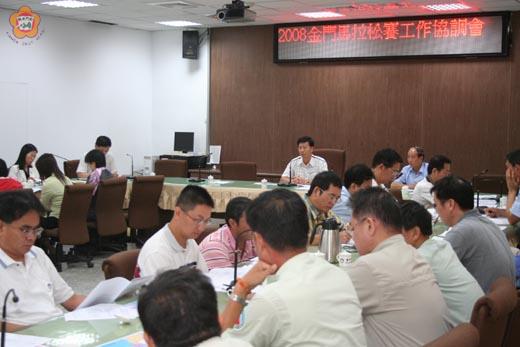 2008金門馬拉松競賽,敲定於2008年一月五日在金門舉辦。金門縣政府昨就再度邀集相關單位,針對活動舉辦各組支援工作事項等,進行協調討論。 縣長李炷烽強調,這項具有意義的國際性大賽,希望在籌備上更周延,籌備專案辦公室和人選趕快設立、確定,並在有大陸福建省一千位選手、日本五百位選手將參加,希望中央能把政治和體育分離,以吸引更多國內外選手參與盛會,達到宣傳體育活動目標,讓金門走出去,讓最適合運動的金門「金字招牌」更發光發亮。 金門縣政府及金門國家公園管理處為發展地區觀光事業,推展國際觀光形象,將與中華民國路跑協會於九十七年一月五日在金門共同主辦「2008金門馬拉松」活動。根據中華民國路跑協會秘書長陳華恆表示,競賽組預估將有二千二百人參賽。至於加上健康休閒組參加人數,希望達到超過一萬人以上。而主辦單位將邀請全球六大馬拉松賽城市冠軍選手來金參加。 為金門馬拉松競賽舉辦,所召開的工作協調會議,昨日上午在縣政府舉行,由縣長李炷烽主持,金門國家公園管理處處長黃文卿、中華民國路跑協會秘書長陳華恆、金門縣政府教育局長李再杭,以及縣府暨所屬機關、金管處代表、航空公司代表等,計近五十人出列席參加。 會中,縣長李炷烽也希望金門馬拉松賽的籌備專案辦公室和人選趕快確立,而日本有五百位選手將來金參加,主辦單位也要透過外交系統協助解決入出境手續問題,並期以最少經費,達到最完美的比賽宣傳效益。金管處長黃文卿也表達管理處將全力以赴,希望帶動金門產業經濟發展,將金門推向國際舞台。 根據中華民國路跑協會企劃,活動指導單位為行政院體育委員會、內政部、交通部、陸委會、金門縣議會,主辦單位金門縣政府、內政部營建署金門國家公園管理處、國立金門技術學院、中華民國路跑協會。協辦單位交通部觀光局、金門體育會、ESPN/Star Sports、廈門廣播電視產業發展有限公司、AIMS,主要贊助單位金酒公司,協助贊助單位維他露食品股份有限公司。 2008年金門馬拉松賽,將於2008年一月五日上午八時進行比賽,大會會場由原先規劃的金門縣立體育場(起終點區)改在金門技術學院。轉播媒體:ESPN/Star Sports、中國中央電視臺體育頻道、福建衛視、廈門電視臺、廈門衛視臺、東森、台視等。 中華民國路跑協會指出,馬拉松賽會,是全球百年來的趨勢和潮流之一,它代表城市的健康與繁榮,遠如法國的巴黎、德國的柏林、義大利的羅馬、美國的波士頓、紐約、夏威夷,日本的東京、大阪、京都、鹿兒島,韓國的首爾、濟州、慶州,大陸的北京、廈門、大連,泰國曼谷,馬來西亞吉隆坡及臺灣的臺北、花蓮太魯閣皆將馬拉松活動列為年度觀光盛事。金門特有的地理位置是兩岸交流最佳平臺,「兩門一家親」歷史及鄉愁的牽絆是無法割斷,血濃於水只有更密切合作方為現今主要課題。融合運動競賽、旅遊觀光、文化交流等特色,廣大的大陸路跑愛好者,將和臺灣民眾一同奔跑。馬拉松不僅是體育運動的嘉年華會,更是兩岸人民透過馬拉松活動交流一大盛事。 中華民國路跑協會並指出,金門四面環海,島上鬱鬱蔥蔥,清新的空氣,優美的環境,使其成為路跑佳地。環島而跑,白色的沙灘,古樸的古厝,威風凜凜的風獅爺,宏偉的戰備坑道,與廈門的隔海相望,都為金門馬拉松增添無窮的樂趣。金門馬拉松的賽道,集自然古樸,歷史文化於一身,將吸引兩岸無數民眾的參與,億萬眼睛的關注,眾多媒體的聚焦。 至於活動分組方面,將設有行政組、企劃組、晶片系統組、紀錄組、競賽組、裁判組、兩岸事務暨旅遊組、貴賓接待組、新聞組、地方事務組、交管組、急救醫護組、賽會場地組、獎典組、選手之夜組、藝文活動組、地方產業組、交通運輸組、服務組、環保組、維安組等。 競賽分組方面:馬拉松、半程馬拉松、路跑組(十公里)、健康休閒組(三公里),並設視障組。而健康休閒三公里,則不分男女與組別,不排列名次。 有關報名辦法,地點一,104臺北市中山區玉門街一號(中山足球場),電話:886-2-25855659,傳真:886-2-25996716。地點二,中國廈門廣播電視產業發展公司,廈門市湖濱北路一百二十三號一樓,電話:592-5301666,傳真:592-5301688。地點三,國立金門技術學院,892金門縣金寧鄉大學路一號,電話:886-82-313592,傳真:886-82-313594。 報名日期,自即日起至九十六年十一月十日止,馬拉松賽報名費預計新台幣七百元,半程馬拉松賽新台幣五百元,十公里(路跑)新台幣三百元,健康休閒三公里,免收報名費。