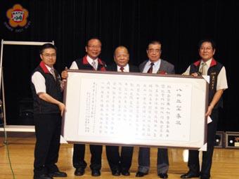 隔海慶祝八二三,頒獎表揚兼歌唱,齊賀金門若金湯,英雄浯島美名揚。 今天就是「八二三砲戰」紀念日,台北縣金門同鄉會、台北縣中和市公所、台北縣議員陳錦錠服務處等單位,於日前(八月十九日)假中和台灣圖書館,共同舉辦「紀念金門八二三砲戰勝利四十九週年卡拉OK歌唱比賽暨表揚模範父親、頒發大專獎助學金大會」活動,隆重慶祝「八二三砲戰」四十九週年。 活動期間正值颱風來襲,但鄉親不畏風雨,因此,主辦單位緊急會議決定,活動如期舉行,現場也準備好颱風的相關因應配套措施。 當天活動場面熱鬧、溫馨,台北縣金門同鄉會理事長黃獻平與中和市長邱垂益、823戰役戰友總會長呂芳煙、台北縣議員陳錦錠(金門媳婦)等,共同為張邦育、陳世昌、黃應夢、張維廉、蔡亞例、林芬藻、王振利、李忠興、林健兒、翁炎輝、陳宗論、孫光明、葉耿漢、許丕華、蔡石崇、張繼遠等十六位模範父親頒發獎狀,表達對模範父親的最高敬意。 大專獎助學金部分,則由前台北縣金門同鄉會理事長張邦育主持頒發,獲獎的有:研究所─張菡穎、李根漢,每人頒發獎學金六千元;莊雅雯,助學金一萬元。大學|吳家蓁、李婉真、趙百筠、鄭宇婷、陳曉潔、盧宣良,每人五千元。技術學院|陳政宇、李佩蓉、陳毓琳、吳瑀彤,每人四千元。李根漢同學代表獲獎人致感謝詞時,除感謝先進提供獎助學金,也期許將來事業有成回饋鄉親。 活動中也展開卡拉OK歌唱比賽,分少年、青壯、長春三組進行,由具有音樂素養的鄉親義務擔任評審老師,包括蔡開吉老師、吳英老師、李文山老師,獲獎的計有,長春組:第一名張雲猛,第二名黃榮華,第三名莊水柱;青壯組:第一名黃少平,第二名江怡璇,第三名李載穆;少年組:第一名陳怡君。得獎者均由理事長黃獻平頒發獎盃乙座;而為感謝評審辛勞,同鄉會也頒贈感謝牌以示感念。 理事長黃獻平代表所有的理監事,感謝鄉親熱心參與、志工無私的付出,並感謝前理事長張邦育捐助五十萬元當做獎助學金基金,他也感謝鄉長們長期對台北縣金門同鄉會的捐助、提攜,表示無以回報,只有更努力的打拚,回饋金門鄉親。黃獻平亦對鄉親志工及風雨無阻犧牲假期的理監事,不求回報的付出,致上最高敬意。 會中,同時也獲得在場的陳世昌董事長、黃應夢董事長共襄盛舉,各捐助十萬元獎助學金基金。 另外,也有許多單位及鄉親提供摸彩禮品,計有:金門縣長李炷烽、金酒公司董事長李榮文、立委吳成典、金沙鎮長陳昆第、烈嶼鄉長林金量、中和市長邱垂益、永和市長洪一平、林芳旋將軍、永和市民代表張繼遠、縣政顧問王振利等。黃重慶董事長則提供咖啡車免費無限供應,楊忠敬則帶領保健按摩團隊為鄉親舒壓解勞。 此次活動到場的貴賓相當多,包括:立法委員張慶忠(金門籍)、林德福及吳成典辦公室主任李炳團,823戰役戰友總會長呂芳煙,北部地區後備指揮官林芳旋將軍(金門籍)、台北縣後備指揮官李佩忠,金門縣政府北區主任黃淑麗,中和市長邱垂益、永和市長洪一平,台北縣議員陳錦錠、連斐璠、林國春(金門籍)服務處秘書林德勝,中和市代主席呂禮旺,代表戴德成(金門籍),前國代陳允火(金門籍),中和市公所財政課長李宗漢(金門籍),台北市金門同鄉會理事長王水衷、中華民國金門雙鯉公共事務會理事長李國贊、金門烈嶼公共事務會會長林永輝等均參與盛會。