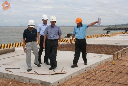 聖帕來襲!縣長昨環島視察,依序前往水頭港、新湖漁港、料羅港區、林務所等地,了解防颱情形、林木受損情況,慰勉各處所戒備值班人員工作安全為第一,之後即回到防颱中心坐鎮指揮。李縣長關心碼頭工作的工人,要他們特別注意安全,颱風天應做好防颱工作,減少外出,也叮嚀各第一線單位,金門還在暴風範圍內,千萬不可以輕忽,要更嚴加防範。 縣長繼日前前往大小太湖涵洞施工處、南門抽水站等了解抽水站運作以及施工情形後,昨日上午八時許即全島走透透,關切各地防颱準備工作以及各港口戒備情形。 縣長李炷烽昨日上午在建設局局長李增財、交通旅遊局局長林振查、港務處處長張國土等人的陪同下,八時自防颱指揮中心出發,依序前往水頭港、新湖漁港、料羅碼頭、林務所等地,了解防颱工作、港區船隻管制情形、島上林木有無受損,並慰勉各單位同仁在颱風期間戒備工作的辛勞,也表示「安全第一,大家務必小心」。 據中央氣象局預報,昨日金門已進入聖帕暴風圈內,由於聖帕颱風結構紮實,金門地區應嚴防強風豪雨。李縣長昨日上午約於九時許抵達料羅港區,由於聖帕颱風正接近金門,海面風浪強大,港區風勢強,在港務處處長張國土引領下,前往碼頭工程施工區了解工程情形以及港區防颱準備工作。 昨日地區雖然停止上班上課,但負責港區工程工人,仍繼續進行地基鋼鐵結構工作,縣長關心工人的工作情形表示,港區風勢強大,雖然施工地區為平地,非高樓,仍叮嚀工人要特別小心安全。 李縣長也說,昨日至各地視察,一路上仍有很多民眾外出工作,建議民眾於颱風天,若非必要儘量在家休息,做好防颱工作,並避免到海邊等危險地點從事海上休閒、釣魚等工作,以防範任何意外的發生。 港處務務長張國土表示,港區一切防颱準備工作完善,所有同仁也在戒備中,所有貨輪、繫緊繩索、靠岸停泊,全停止作業,今將視天候情形管制其作業。 縣長李炷烽昨在結束料羅港區視察後,前往林務所了解林木、苗圃防颱準備工作,由所長葉媚媚引領縣長等人前往苗圃等實地了解情況以及所裡防颱準備工作。 縣長李炷烽也關心,由明乘長老所贈送的樹之復育情形以及自河南引進雪松的復育情形,葉媚媚表示,復育情形良好,其中雪松將複殖為行道樹,美化道路。 葉媚媚也表示,所裡已做好各項防颱準備工作,因聖帕帶來強風,昨日計有部份路樹約二十株被風吹倒,工作人員立即前往清除,未對交通造成影響,而相關同仁也隨時待命,以做好各項防範工作。 縣長李炷烽走訪各單位了解同仁防颱準備及戒備工作,並慰勉他們的辛勞,也特別要大家於工作的同時,應特別小心,安全第一。 李縣長在結束林務所的視察後,隨即回到防颱指揮中心坐鎮指揮,落實各項防颱工作。