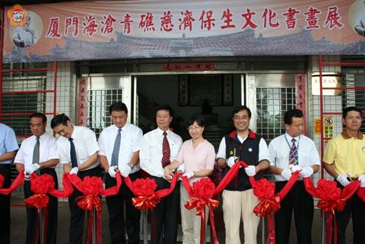 廈門海滄青礁慈濟宮組團護送保生大帝金身「本尊」神像,首次來金展開大、小金門遶境巡安及文化交流活動,並配合舉辦的「慈濟宮保生文化書畫展」,昨日在金門縣長李炷烽、立委吳成典以及海滄區政府副區長何伯星等來賓的剪綵下揭幕,展出至本月十五日,展示的作品有八十四件,包括兩岸政要、學界名人揮灑的筆墨作品,可以透由形象生動的作品,瞭解吳真人的生平,還可以看到千年古宮發展的脈絡和最新的丰采,以及海峽兩岸保生慈濟文化源遠流長的關係,保生慈濟文化在世界各地廣泛傳播開來,不僅融入了民間生活,還衍生了民間藝術。 這項「廈門海滄青礁慈濟宮保生文化書畫展」的揭幕儀式,於昨日上午十一時假文化局舉行,包括,金門縣長李炷烽賢伉儷、立委吳成典、廈門海滄區政府副區長何伯星、廈門市政協副主席翁雲雷、福建省政府辦公聽主任黃偉生、海滄投資區黨工委副書記林世、福建省台辦交流處處長陳式海、廈門海滄青礁慈濟宮理事長呂根銓、以及金門縣政府民政局長洪國正、教育局長李再杭、文化局長李錫隆等來賓參與,還有青礁慈濟宮團員和大、小金門保生大帝廟宇的代表共同參與活動,現場人氣十足。 縣長李炷烽致詞指出,廈門海滄青礁慈濟宮組團護送保生大帝金身「本尊」神像,首次來金展開大、小金門遶境巡安,可說是歷史性的活動,書畫展的配合舉辦,也是難得的盛會,在此同時,金門歷史古蹟朱子祠也舉行重建落成啟用儀式,他說,文化是共同的根源,中華文化源遠流長,從倫理的中國到文化的中國,相信未來正朝著和諧的中國、和平的中國、倫理的中國來共同奮發。 李縣長也表示,保生大帝到金門巡安,所代表的意義,不僅僅只是宗教的儀式,還蘊含著文化歷史的意義,賦有教育啟迪教化的功能,此外,大陸團員的造訪金門,也帶來推動觀光旅遊的正面影響,也希望藉助該項活動的舉辦,讓大家體認到倫理在中華文化的價值,了解文化對於後代子孫影響的深遠,相信現在的傳承,後代子孫一定能光大發揚。 李縣長也希望在大家豐衣足食之餘,如何朝向和平美好的世界,來恪盡炎黃子孫的責任,提昇人類的尊嚴,尊崇人道的價值,共同邁向民主的中國來努力,這是共同的使命,也是共同奮鬥的目標,相信透由活動的舉辦,凝聚兩岸的共識,結合兩岸的力量,一定可完成兩岸共同的目標。 立委吳成典也指出,金門是離島,最欠缺的就是醫療資源,這也是他一直結合李縣長來向中央爭取改善離島的醫療品質。他說,保生大帝是醫神,除了醫療資源要繼續的改善,內心也祈禱保生大帝的保佑平安,兩者相輔相成,民眾健健康康,生活品質愈來愈好。 廈門海滄區政府副區長何伯星也提出團員來金門的感受,除了活動的熱鬧、昨日也普降甘霖、以及金門鄉親的熱情的迴響,拉近雙方的感情距離。 何伯星指出,保生大帝巡安金門是千年頭一回的盛事,也是兩岸交流的盛事,邁出歷史性的一步,寫下歷史性的一頁。他說,為宏揚保生慈濟文化,廈門海滄青礁慈濟宮理事會也配合巡安活動舉辦這項畫展,加深華夏兒女同根同源、血脈相連之情,增加兩岸文化藝術交流。此次,「保生慈濟文化書畫展」注重刻畫青礁慈濟祖宮的歷史風貌,注重實錄保生慈濟文化交流中兩岸民間往來的深情,作為兩岸民間共同信仰的「真人所居」之地,青礁慈濟宮凝聚著兩岸血濃於水的親情,蘊載千百年歷史文化的獨特魅力。 何伯星表示,這一次書畫展彙聚兩岸政要名人筆墨智慧,作品豐富多采,包括,中國國民黨名譽黨主席連戰、福建省人大常委會副主任張家坤、金門縣長李炷烽等政治人物,和台灣師範大學教授陳大洛、廈門大學教授余剛、廈門市地名協會會長方文圖等學界名人紛紛題詞作畫,頌揚保生慈濟聖德,宏揚保生慈濟文化。大陸著名書畫家福建省文聯副主席、書協主席陳奮武、廈門市書協副主席謝榮仁、廈門美協副主席、美術館館長白磊等崇揚保生慈濟文化的作品,用筆墨訴心聲,以丹青抒胸懷,也成為此次書畫展的一道亮麗風景。 慈濟宮理事長呂根銓也表示,多年來,海滄人一直把實踐和弘揚慈濟精神做為一項功德之舉,至今「更鳴嶺」上留下的真人眾多聖跡,不斷吸引著一批又一批的藝術家親歷真人踏過的山山水水,瞻仰真人聖跡,激發創作靈感,廈門海滄油畫協會會長李墨牛等畫家的作品,就真實展現出真人故里的獨特風采。此次書畫展總計展示作品八十四件,其中書法作品六十七件,油(國)畫十七件,均為錶框作品。他表示,千百年來,保生大帝慈惠濟世的大道精神,一直為人們所敬仰和讚頌,薪火相傳,歷久彌新,已經成為閩南傳承文化、兩岸文化的重要載體,其「健康、慈濟、和諧」的文化精隨跨越了歷史和地域的空間,也得到海峽兩岸愈來愈多人的擁護,兩岸民間交流日益密切,範圍日漸廣闊,台灣、金門經常組團前往大陸尋根祭祖,兩岸聯繫愈加密切。 活動中,李縣長也贈送親筆書寫的墨寶,並參觀了展示的作品,鼓勵鄉親把握這一次展出的機會,前往觀賞。