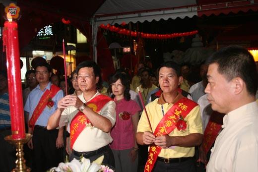 廈門市海滄青礁慈濟宮保生大帝金門巡安敬獻大典,昨日晚間在金城鎮北門北鎮廟舉行,主獻官縣長李炷烽、青礁慈濟宮理事長呂根銓帶領地方首長及青礁慈濟宮與地區保生大帝廟長老陪祭,祈求庇祐地方平安,場面莊嚴隆重。 從廈門市海滄青礁慈濟宮渡海來金的保生大帝神像,可是讓北門里熱鬧滾滾,不但有來自各地的陣頭齊聚,還有大批信眾一起參加了敬獻大典,雖然天空下起了大雨,可是也沒澆息大家瘋保生大帝的熱情。晚間在廟前廣場演出「包公巧斷母子河」歌仔戲,縣長李炷烽賢伉儷、青礁慈濟宮理事長呂根銓,立委吳成典、青礁慈濟宮名譽理事長林世等也和熱情觀眾一起捧場。 這項敬獻大典於昨晚間七時許在北門北鎮廟舉行,縣長李炷烽、青礁慈濟宮理事長呂根銓擔任主獻官,立委吳成典、青礁慈濟宮名譽理事長林世、福建省台辦交流處處長陳式海、縣議員李沃士、金酒公司董事長李榮文、縣長夫人吳麗鳳、金城鎮民代表會主席陳天成等人陪祭,還有大批信眾一起參加了敬獻大典。祭典也依古禮「鼓嚴三通」行三獻禮祭典,並由李縣長獻爐敬、獻金牌,祈求庇祐地方平安,場面莊嚴隆重。 其敬獻祝文:時維公元二零零七年八月十日歲次丁亥六月己酉朔越二十有八日丙子吉辰為恭迎廈門市海滄青礁慈濟宮保生大帝蒞臨金門巡安獻敬大典,主獻官金門縣縣長李炷烽、青礁慈濟宮理事長呂根銓,陪獻官福建省政府代主席楊誠璽、金門縣議會會議長謝宜璋、副議長許玉昭金門國家公園管理處處長黃文卿、各鄉鎮長代表會主席各社里保生大帝廟主席委員及長老率金夏兩門各界代表虔備香齋清貢之儀肅薦於萬封萬壽無極保生大帝聖駕暨隨扈尊神之前恭誠申祝曰:閩臺日麗。金廈風清。瑞氣薰騰兩岸。神光溥照雙門,巍巍大帝。赫赫真君。體天心以行道。匡政教而揚靈。紫薇垂象。誕祥濟世保生。青礁弘化。施醫治病宣仁解瘟驅厲。展神通以安民。賑災救苦。灑甘露而回春。金鍼癒疾。慧藥醫貧。敷妙術以流澤。圓功果而飛昇。忠顯英惠。康祐沖應。聖德勳輝炳耀。詔書慈濟尊榮恩被萬代。群黎沐愛感欽。靈昭八表。寰宇崇祀恭誠巡安錫福。金門隆慶光興。獻敬祈願。生民永樂熙寧肅誠晉頌。伏冀鑒歆。 青礁慈濟宮赴金門巡安頌文:維 歲次丁亥六月二十九日,海風駘蕩,神清氣爽,廈門市海滄青礁慈濟宮理事會全體同仁並信眾近300人,自祖廟恭請萬壽無極保生大帝聖駕出巡,經金夏海域抵金門,並在金城鎮北門北鎮廟駐駕。吾等與金門善信一道,謹以馨香、素果、芳花之禮儀,致頌於大帝聖靈而告曰:溯自宋代,天降真人,博覽群書,自幼聰穎,研習歧黃,精益求精;結廬青礁,普濟眾生,采藥文圃,救治萬民;龍湫修煉,道高德清,丹井猶在,藥石長存。慈懷濟世,朝野蜚聲,生為神醫,羽化成神,廟食歧山,信眾虔誠,恩施海西,澤沛東瀛,金門分靈,烈嶼傳燈。今日起駕,海上出巡,佑我善信,保我生民。鷺江浯江,手足情深,南北太武,地脈相承。金廈兩門,同氣連根,緬懷聖德,萬眾一心。頂禮祝頌,天下太平,金廈同胞,幸福安寧!尚饗!