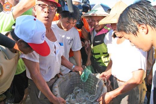 分享漁家豐收的喜悅!這是一則漏網新聞。 2007金湖鎮海灘花蛤季活動已圓滿落幕,過程中吸引大批民眾前往參與,在正義牽罟班的帶領下,大人、小孩體驗牽罟樂,老少咸宜,最後,合力收網,並包圍漁簍,爭睹豐收的成果!