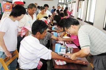 金寧衛生所推動的「金好康健康檢查」下鄉服務列車,昨日開抵古寧村辦公處,衛生所主任陳水湖偕同多位專業醫師和衛生所人員為民眾免費做慢性病各項篩檢服務,志工們也在現場宣導衛教保健,藉由篩檢服務,幫助個人及早找出個人的疾病,早期發現疾病,早期接受治療,身體的健康也就是家人的幸福保障。 昨日上午八時未到,金寧衛生所主任陳水湖率領護士鍾麗蓉、張秀華、以及衛生所人員莊麗嬌、蔡素芬、顏華雯等人員,結合四十多位社區天使帶著相關的醫療器材到古寧村辦公處等候民眾前來做健康檢查,署立金門醫院外科專科醫師董文雅和婦科專科醫師陳根雄、以及牙科醫師洪長享也加入服務的行列,吸引來自古寧、林厝、沙崗社區的民眾近二百人前往健檢,顯示出民眾愈來愈重視預防保健的重要性,讓自己的身體健健康康。 陳水湖等醫師細心的為民眾看診,衛生所人員也進行血液檢驗、血糖、血脂肪、膽固醇、肝、腎功能等相關的檢查,社區天使也在廣場進行衛教宣導,灌輸民眾正確的預防保健常識。 陳水湖指出,近年來定期性健康檢查觀念開始推廣,針對個人的需要提供適當的檢查,以便早期發現疾病,及早期接受治療。而這些定期性檢查項目依個人的性別、年齡、家族或個人疾病史而作調整,例如對老年人發生機率較高的腸癌,建議作定期肛門指檢。對於四十歲以上的婦女、建議加作乳房攝影術以提高乳癌的篩檢率。 陳水湖表示,目前健保局建議四十歲以上成人每三年一次定期性健康檢查,與六十五歲以上每年一次,希望藉定期健康檢查來減少日後因重病而增加的醫療成本。金寧衛生所於星期一至星期六早上都可提供民眾作健康檢查,只要30歲以上都可以檢查,也有各種不同的健康檢查服務項目,目的在幫助個人及早找出個人的疾病,早期發現疾病,早期接受治療,你我的健康就是家人的幸福保障。 金寧衛生所金好康下一站列車於8月19日(星期日)在榜林村公處;9月16日在瓊林里辦公處,衛生所提醒30歲以上民眾把握免費檢查的機會,就近前往接受檢查。