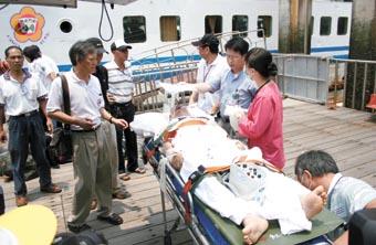 老榮民陳祥柏回中國大陸山東省青島老家探親,上(六)月下旬突發中風,住進當地醫院治療,家屬向金門紅十字會求援,希望小三通返台接受照護,金門紅十字會與廈門紅十字會聯手啟動救援機制,並協調上海市醫療急救中心派出救護人車趕往青島市接人,歷經二十幾小時長途跋涉將病患送抵廈門市中山醫院,並於昨日中午經小三通管道接到金門,由金門縣榮民服務處接手安排後送台灣進一步治療。 八十八歲家住新竹市的陳祥柏,是新竹榮家外住就養榮民,他在今年五月間經港澳地區中轉前往青島市老家探親,不料於上(六)月二十二日因呼吸窘迫,被送到青島市第八人民醫院,經診斷為堅質性肺炎,後併發中風,再轉青島市醫學院附屬醫院治療,家屬希望循由小三通返台接受治療,向金門紅十字會請求協助。 金門縣紅十字會在本(七)月十五日接到病患家屬求援,立即與廈門市紅十字會連繫,聯手啟動人道救援機制,由於病患遠在青島市,需仰賴呼吸器並插管,全程需要醫護人員照顧,而由於青島市沒有跨省醫療救護車,經協調僱請上海市醫療急救中心派出救護人車趕往青島市接人。 上海市醫療急救中心救護車及醫生祝耀洲,在二十一日下午三時到青島市接運陳祥柏,經過二十五個小時車程,於二十二日下午四時將病患送抵廈門市中山醫院,與提前由金門前往廈門的金門縣紅十字會總幹事許金象及志工林再求、翁文獻、何慶輝等人會合。 由於陳祥柏病情需要醫護人員隨行照護,兩岸循「上岸不入境」往例,安排上海醫生祝耀洲上船陪同病患小三通到金門,讓病患受到更好照顧。 昨日上午金門縣紅十字會許金象與志工和隨行照護的祝耀洲於在廈門搭乘小三通班船「同安號」,於中午順利將老榮民陳祥柏護送抵金門水頭碼頭,並由在岸上待命的署立金門醫院救護車接到醫院觀察,而金門縣榮民服務處總幹事呂媽定也率員到碼頭,接手安排老榮民後送事宜。 許金象表示,這次陳祥柏醫療小三通,從青島市送到廈門市,創下陸上最遠距離護送的記錄,而上海醫生祝耀洲也是第一位小三通照護病患到金門的廈門市外醫生,也算得上是小三通醫療救援的一項創舉。