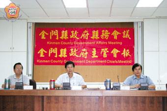 縣府昨日召開主管會報,縣長李炷烽特別介紹新到任的主任秘書盧志輝、社會局長許乃權,李炷烽推崇主任秘書盧志輝應是各局室資歷最資深的,行政經驗也十分完整豐富;他也介紹社會局長許乃權,肯定他在地區立委初選中,表現中規中矩、不流於口水之戰。 主管會報由縣長李炷烽主持,副縣長楊忠全、主任秘書盧志輝、各局處室主官管出席參加。 李炷烽坦言,嚴格說來,他對許乃權並不熟悉,不過名城電視播出地區立委初選政見發表,他很用心看,發現許乃權雖擔任軍職,但是並沒有與社會脫節,政見發表中,各項數據引用精確,也沒有情緒性語言,表現中規中矩,不會流於口水之戰,且以將軍之尊,在選戰中,放下身段、到處拜票。因此,經人推薦下,以政務官延攬任用;李炷烽指出,縣府任何人事任用發布,媒體及網路都會有所批評,他感謝各界指教。 衛生局副局長李金治表示,這次報名醫學系保送的金門子弟人數,共有十七人,其中應屆畢業生有九位,她也說明今年保送醫學系相關作業進行情形。 研考室主任陳朝金轉達,經建會主委何美玥指出,離島基金計畫案執行率偏低,他提醒相關單位要加強。 人事室主任翁正義則說明未來組織自治條例將修訂,縣市政府局處室會大幅縮編,其中,三離島縣市局處室數目,可能於年底,由現有十九局處室縮編為十七個局處室;另外,縣市政府主管職等也將提昇,不過,也研議局處室需二十人才設副主管,縣府正爭取放寬,目前中央刻正開會研議相關規定。 教育局長李再杭表示,今年地區國中小教師甄選工作已結束,國中正式教師錄取十五位,金門籍九位;國小正式教師錄取十一位,金門籍八位;幼稚園正式教師錄取九位,金門籍有六位;李再杭也說明邀請大陸人士來金參加料羅海泳進行情形,原本邀請來金參加的有六百二十多位,其中有五百多位獲准來金,但是據聞陸委會要求旅行社切結,這些大陸人士不能下水,目前已請立委召開跨部門會議協商爭取。 縣警局長林文全則說明,刻正爭取金門港的警力改由中央派遣負責。 縣長李炷烽表示,接到烏坵鄉民寫給行政院的建議,建議中有很多是屬於中央的部分,但陳情卻全轉給縣府,李炷烽批評行政院該信箱虛應故事,未能發揮真正功用,讓人很無奈;沙美老街、金門城老街,雖有心推動,但因政府人力有限,他指示研究能否結合並委由民間參與進行修復?有關鄭氏家廟,希望鄭氏子弟也能加強支持配合;胡璉文物紀念館的興建,軍方、相關單位應認真面對,並強調,國防不能自外於民生;配合離島建設條例修訂,因免稅商品限縮在碼頭及機場,而地區現有機場空間有限,李炷烽要求研議能否在航站旁再蓋棟大樓?金烈大橋橋址經多方評定確定,都市計劃聯外道路業已核定,相關地籍資料的提供、協議收購土地金額的計算,越快越好;有關「金門縣敬老福利津貼自治條例」更名為「金門縣歷經戰地軍管時期老人慰助金自治條例」,有很多的地區年老勞工陳情,新條例通過實施後,慰助津貼形同少了三千元,認為不合理,李炷烽表示,將請社會局再予研究。