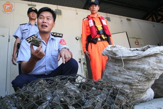 海巡署(第十二巡防區)金門岸巡總隊於六月二十一日查獲三千八百四十八公斤的帶殼牡蠣,數量為歷年來之最。不同於以往的是,過去的走私牡蠣,都是剖好的蚵,這次卻是全部帶殼的。 金門岸巡總隊於昨天對外發布這項查獲牡蠣走私的訊息;情報官王倫俊表示,這是執行「安康專案」的成果。由於走私的水產品未經過檢疫,對人體的健康沒有任何保障,他代表所屬單位,籲請民眾不要購買或食用來路不明的水產或食品。 根據金門岸巡總隊的說明,岸巡人員的雷達作業組於六月二十一日深夜發現一艘舢舨船從外海向洋山海堤航行;五龍山和劉澳機動巡邏站接獲通報後,立即前往查緝,但舢舨船在丟包之後,就迅速向中嶼島方向駛去,只留下網袋綑紮的帶殼牡蠣。走私的帶殼牡蠣經清點之後,總重量約三千八百四十八公斤(將近四噸)。這是近年來,岸巡總隊查獲的最大宗管制水產品。 據新巿里的漁販李火明(六十歲)表示,岸巡人員查獲的大陸走私牡蠣,外觀與金門本地所產者並無不同;不過,大陸人為了吊養牡蠣,鑽孔之用來貫串的繩子是青色的,和本地不同。李火明表示,一擔帶殼牡蠣的重量約六十斤,剖蚵之後,輕則十四斤,重則十八斤。在金門,目前一斤青蚵的巿價約為五、六十元。 海巡署第十二巡防區表示,海巡署目前正在執行安康專案,對於非法走私農漁產品的行為,將持續嚴密查緝。大陸地區是多種疫病流行的區域,若讓未經檢疫的產品,或是帶有病蟲害、傳染病的物品上岸,將會對金門及臺灣帶來可怕的衝擊,希望金門鄉親愛用本地的產品,杜絕走私,一起為健康和經濟把關。 根據相關報導,牡蠣本來就是一種能攜帶傳染病的風險產品;在大陸的深圳地區,曾發生疑因生吃、半生吃牡蠣等水產品而導致傷寒疫情的案例;在浙江的江東區,經由市場抽查,曾發現大部分的牡蠣帶有甲型副傷寒桿菌。 大陸牡蠣違法登陸的結果,將會造成牡蠣價格下降,使本土牡蠣面臨滯銷的危機;若是為了保鮮而在運送過程添加防腐劑,則會對民眾的健康,產生鉅大的負面影響。此外,大陸地區的環保管制措施並不嚴謹,走私牡蠣可能有重金屬殘留的疑慮。 王倫俊表示,這些走私牡蠣被查獲之後,原本冰存於新湖漁港的凍櫃冷藏,除了一小部分將採樣送檢之外,其餘將會全數銷燬。