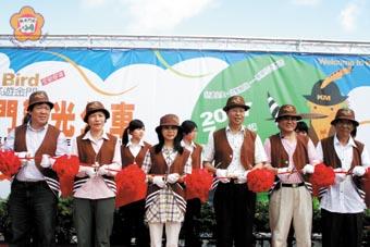 金門縣政府和金門國家公園管理處合作推出的「觀光公車」昨日啟動,縣長李炷烽期待透由「觀光公車」的上路,讓遊客體驗不一樣的離島自由行程,達成開發自助行的客源,調整金門旅遊的型態,把觀光大餅做得更大,開展金門觀光事業的新局面。雙鯉濕地自然中心,並有三十五輛自行車,免費供遊客騎乘。 金門觀光公車啟動儀式,昨日上午九時在古寧頭雙鯉濕地自然中心旁廣場舉行,縣長李炷烽、副縣長楊忠全、金管處處長黃文卿、金門觀光協會常務監事顏達仁、金門縣旅行公會理事長吳嘉獎等共同剪綵,宣示籌劃三個月的觀光公車上路。縣政府局室主官、本報社長黃雅芬以及金城鎮長蔡輝詩、金湖鎮長李成義、金沙鎮長陳昆第、金寧鄉長李文俊、金寧鄉代會主席李正騰以及民意代表、各航空公司金門站主管、地區旅行社業者也到場觀禮。 縣長李炷烽指出,金門觀光事業發展迄今有十多年,但是深深感覺到十幾年的努力,旅遊型態還是比較偏向「包辦式」的旅遊,自助行的旅客相對的減少,經由金門縣政府交通旅遊局和金門國家公園管理處經過一段時間的規劃和準備,「觀光公車」的上路,希望達成開發自助行的客源,來調整旅遊的型態,一方面也能善用現有的公車資源,來讓金門的公車能具備多元化的服務,也期待透由「觀光公車」的啟動,使旅遊業界能招攬更新和更多的客源,這些目標如果能達成,會讓金門觀光事業的蓬勃發展能增添助力。 李縣長指出,這一次「觀光公車」的啟動,規劃有四條路線,金城線翟山至金門城;古寧頭線、太武金沙縣以及榕園金湖線,初期每一條線有一部「觀光公車」,作為試辦的性質,並從即日至本月30日開放免費試乘,7月1日起正式營運,只要有興趣的鄉親和朋友都可以參與,也期待透由「觀光公車」的努力,來塑造金門觀光形象,觀光遊覽業者未來也能朝自己經營觀光巴士做努力。 李縣長表示,「觀光公車」七月一日正式營運後,金門鄉親可以透由持有的IC卡來免費搭乘,只要有意願,有興趣、關心金門觀光事業的發展,都歡迎大家踴躍來搭乘。此外,對於縣外的遊客也可以購買觀光公車的購車券,會提供最低廉的票價和最好的服務,觀光公車上還有專任的解說員,做定點服務和解說。他說,這項計畫的推動,還得端賴大家的關切和支持,相信可以讓金門觀光事業展開新的局面。李縣長也表示,這項「觀光公車」在籌備的過程中,有些觀光運輸的業者深怕會影響到他們的生計,事實上,籌備過程中也對此因素問題作考量,並不希望所有旅遊業者來分食有限的餅乾,而是希望透過該項規劃和執行,做大這塊觀光大餅,帶動金門全面觀光事業的發展和繁榮。他希望這項遠大的目標,能在大家同心協力和相互成全下,達到既定的目標和效益。 金管處長黃文卿也表示,金門的觀光公車像一條金項鍊,把金門的觀光景點串聯一起,而這些觀光景點有大部分是屬於金門國家公園區的重要景點,如,水頭、山后民俗文化村、太武山、古寧頭、翟山等,配合觀光公車的啟動後,金管處更有責任建設的更好,做更好的服務,讓金門這一條珍珠閃閃的發亮。 (相關報導見三版)