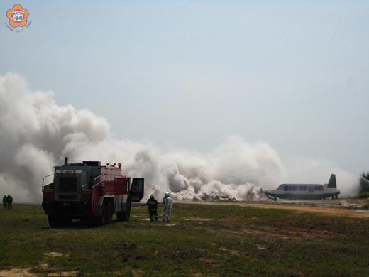 金門航空站九十六年度災害防救演習,昨日下午在尚義機場舉行,參演單位依據演練指令,假想一架航機由台中飛到金門落地時失控偏離跑道,鼻輪起落架折斷,機腹著地起火燃燒進行演練,來考驗航空站動員救災能力,整個演習過程緊湊、逼真。 這項年度空難災害防救演練,金門航空站是為防範軍民航單位可能影響飛航安全事件,並加強各相關單位對航空器失事事件處理應變能力。 昨日的演習,尚義機場下午也關閉兩個小時,雖然天氣相當炎熱,但參演單位仍全力配合。倒是金門船空站人員基於安全考量,限制媒體不能提前入場預作拍攝,需等到演練開始後才能徒步到二、三百公尺遠地方採訪、拍攝,讓到場採訪媒體感覺很不方便,直抱怨拍不到好畫面。 金門航空站這項災害防救演習,昨日下午三時起實施,狀況假定是一架航機由台中飛到金門,機上載有旅客四十名,機組員四名,落地時飛機失控偏離跑道,導致鼻輪起落架折斷,機腹著地起火燃燒,塔臺立即按下警鈴以緊急情況處置。 金門航空站並即啟動緊急應變機制,塔臺值班管制員於發現事故後第一時間按下警鈴,同時以專線通知航務室說明事故情況,並依「金門航空站機場消救方格圖」告知事故位置。航務室值班航務員接獲通知後,依通報程序電話通知航站消防班、消防局、醫院等單位進行搶救,首由機場消防人員趕至班機失事現場控制火勢,並接應機上機員及乘客緊急逃生。 演習結合金指部、空軍金門基勤隊、金門縣消防局、衛生局、航警所、救護醫療單位、各航空公司、慈濟功德會等二十二個單位進行消防、旅客逃生、傷患救護、旅客安置、善後處理等,整個演習過程緊湊、逼真。