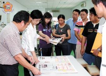 「學生」議員李誠智,昨與金門技術學院運管系十四位同學,到本報為「採訪與寫作」課程的專題報告作準備,透過社長黃雅芬等人介紹了解報社的編採流程、印刷作業等,學生們提出報社的未來發展、報社面對他報的因應對策等問題等,由經理蔡世舜、代理總編輯李福井等一一說明。李誠智表示,收穫豐富,相信專題應該沒問題了! 縣議員李誠智,同時也是學生身分,昨日與運管系日、夜間部十四位同學到本報參觀。適逢議會總質詢期間,本報社長黃雅芬也特別向議會請假,返社主持並向學生簡介報社概況。 運管系的同學表示,他們有一堂課課名為「採訪與寫作」,同學們必需以專題方式繳交,每學期一篇,分組進行,他們幾人剛好和議員同學李誠智同組,經過構思決定以本報為採訪主題。 昨日一行十四人親到報社了解情形,社長黃雅芬也為同學們說明現況,代理總編輯李福井也以其擔任編輯數十年的豐富經歷,和同學介紹編採流程,經理蔡世舜也說明報社經營上的優劣,提供同學做為專題作業參考。 經簡介後,雙方進行座談,學生提到金門日報如何成立;未來面對各商業報紙的報導風格如何因應;報社未來發展方向;目前發展的困境以及調整的方向等問題。 社長黃雅芬等人一一解答學生們的問題,黃雅芬表示,金門日報的定位和其他商業報紙不同,具有地方特色,也是政府機構,平日受縣府、議會的照顧與支持,而在報導上它是一份地方報,具有地方特色也肩負藏典金門歷史之責,更是民眾與政府間溝通的平台,角色地位十分重要,也期盼各界多多支持。