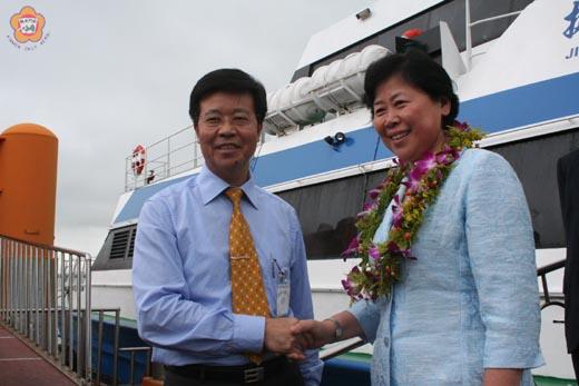 中國福建省副省長王美香,昨日上午率領一百一十七人交流考察團,經金門小三通中轉到澎湖交流考察,為開通福建省民遊澎湖探路。王美香表示,一旦澎湖遊開通,也將帶動金門旅遊發展。至於何時開通,王美香表示還很難說,但強調不會太久。 王美香是以福建省閩台交流協會名譽會長身分,率領由官員、旅遊業者組成的交流考察團,昨日經金門中轉到澎湖進行三天交流考察,這是台灣宣布澎湖納入小三通範圍後,第一個經金門中轉到澎湖的中國福建官方考察團。 王美香率團自廈門搭乘「捷安號」客船,在昨日上午九時二十分抵達金門水頭碼頭,她是小三通自2001年元月二日啟動以來,踏上金門的中國福建省最高階官員,金門縣長李炷烽並率多位縣府一級主管到碼頭歡迎。 身為福建省人民政府主管旅遊業務的副省長,王美香在2003年九月間在福建惠安舉辦的泉州旅遊文化節活動上首次和金門縣長李炷烽會面,翌年兩人再度於中秋節前在福州市相見,當時王美香送出宣布開通福建居民遊金門的喜訊,其後於廈門市又碰面。因此,兩人以老朋友互稱,昨天在水頭碼頭見面,格外熱絡。 王美香表示,負責福建居民遊金馬業務以來,自己還是第一次到金門,心情很愉快,這次目的地是到澎湖交流考察,為啟動福建居民遊澎湖做準備工作。為此,她是特別堅持要小三通經金門中轉,為遊客先探路。 對於澎湖面貌,王美香指出,她沒有很多概念,但記得那首歌「外婆的澎湖灣」,並聽說澎湖海上遊樂項目較多,這次是要去實地感受和體會。 王美香並未透露開通福建居民遊澎湖的時間表,但她表示,一旦開通遊澎湖後,遊客要經金門中轉,相信帶動金門發展可以預期。對於媒體問到何時開通,王美香表示還很難說,不過不會太久。 王美香昨天並走訪金門國家公園傳統聚落水頭村,了解金門的閩南和僑鄉文化,肯定對古厝的保育工作,她表示,回程經金門時要停留一天,再好好欣賞金門風光。 王美香率領的交流考察團,昨日中午從尚義機場搭乘包機到澎湖,進行三天的交流考察,金門縣長李炷烽、副縣長楊忠全,以及縣府多位一級主管和民意代表到機場歡送。立榮航空公司總經理陳憲弘並隨機陪同,考察團預定六月十三日下午再從澎湖包機到金門過夜,十四日下午搭船返回廈門。 至於考察團成員,還包括有中國福建省人民政府副秘書長羅健、外經僑務處處長黃德智、福建省台辦主任鄧本元、交流處處長陳式海、福建交通廳副廳長馬繼列、福建省旅遊局副局長陳揚標、廈門市政協副主席陳耀中等人。 (相關報導見三版)
