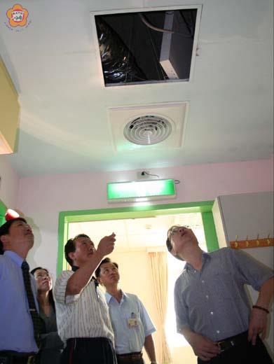 院外嘩啦啦,院內滴滴答,連幾天豪雨,到處溼答答!就連署立金門醫院的急重症大樓,在昨天凌晨,也發生熱水管大漏水的意外,電梯間成了小瀑布。 攝氏四十幾度的熱流,由加護病房門外的天花板流下,順著走廊,湧向大廳,然後向電梯注入。電梯雖然沒有故障,但昨天至少停擺了一個上午。 漏水及積水的意外,在清晨五點多就排除。院方表示,這場意外並未影響醫院的正常運作和對洗腎病人的治療。院長歐天元則把過程當做一次得宜的危機處理和演習。 據金門醫院總務室主任吳炳炎表示,這場意外發生在凌晨二點五十五分左右,持續到三點二十分左右;主因出在熱水管線的T字接頭破損,因此熱水持續由三樓往低處流。不過,除了三樓的走道、大廳積水,並流入電梯之外,並沒有造成其他損害。管線已經由壓接恢復。電梯有一台未遭波及,事後正常起降;另一台因為有水流入,雖然沒有損壞,但停機維修,下午恢復起降。 金門縣議員李沃士、金門衛生局長陳天順、副局長李金治,昨天下午一點半都到場察看究竟,由歐天元和吳炳炎解說處理的過程。 李沃士曾在中鋼公司任職,對工程監督很內行;他認為這起意外,的確是起因於T字型管線,情況還算單純;不過,急重症大樓去年(九十五年)十一月二十八日才陸續啟用,驗收並沒有很久,發生這樣的事情,值得警愓;在公共工程的要求上,應該更加謹慎。無論如何,李沃士、歐天元對於應變能力,還是很有信心。 昨天的事故發生在凌晨,電視台的記者是接到病患的抱怨電話前往的,去的比搶修人員還快,院方對電子媒體的消息靈通感到佩服。 這場院內水災,並沒有影響到洗腎病人;不過,病人還是發現到異常的情況,因為床頭床尾的位置改變了。 據一位民眾表示,醫院水管破裂並非頭一遭,只是沒有這次那麼嚴重。