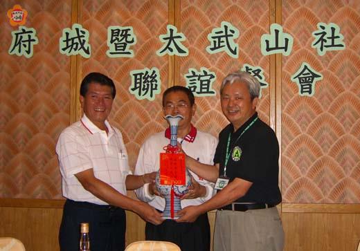 國立台南社教館所轄的台南市府城社教站及金門縣太武山社教站在台南社教館館長林案倱及金城鎮長蔡輝詩的見證下正式結盟為「兄弟站」,讓原本是姊妹縣市的金門縣與台南市更形「親上加親」! 府城社教站召集人王泰源日昨率領該站理監事、志工及幹部二十餘人,專程搭機飛抵金門,受到太武山社教站召集人陳滄江及全體理監事、幹部志工的歡迎,而這項締盟餐會假金瑞餐廳舉行,儀式簡單隆重,府城及太武山社教站的志工五十幾人參加觀禮。 台南社教館社教館館長林案倱表示,太武山社教站的成立是由他一手催生的,而當年太武山社教站成立時,台南市府城社教站召集人王泰源便率大隊人馬前來金門共襄盛舉,這兩年以來府城及太武山兩站互動頻繁,去年陳滄江召集人也曾領軍前往台南與府城社教站作志工研習活動,金門縣與台南市本來就是姊妹縣市,而府城及太武山能結盟更是「親上加親」意義深遠。 林案倱館長肯定金門太武山社教站的努力及付出,在金門地區,太武山社教站已是眾所皆知、活力十足的民間社團,太武山社教站與金門社區發展協會互動密切,在陳滄江召集人兩年多的努力下,太武山社教站在金門地區所舉辦的業務及活動,績效卓著,值得肯定。 在結盟儀式上,陳滄江代表太武山社教站將一只親題「府城結金蘭,情繫太武山」的金門名瓷花瓶致贈給府城社教站做為兩站的「定情信物」,王泰源召集人打趣的說,府城與太武山社教站談情說愛已久,經過愛情長跑終於結成連理了。隨後大家也把酒言歡,交流情誼。