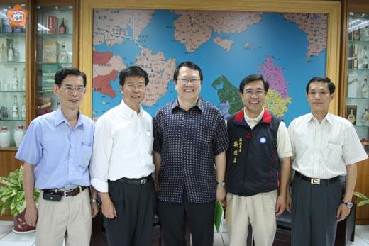 連江縣長陳雪生、議長陳振清帶領府會一行四十人昨天下午聯袂前往金門縣政府拜會,縣長李炷烽親自迎接,對他們來訪,極為高興。 連江縣政府組成的建設考察小組一行四十人,由縣長陳雪生、議長陳振清率隊,成員包括連江縣府各科室主管、連江縣議會議員等人。昨日下午四時三十分前往金門縣政府拜會,縣長李炷烽與各局室主管熱忱歡迎,並假縣府多媒體簡報室舉行座談,雙方並互贈紀念品。