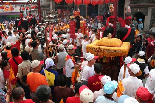 慶祝浯島邑主城隍遷治三百二十七週年遶境巡安大遊行,昨日下午迎請城隍爺起駕遶境巡安,神輿陣頭旗幟、連同四起的煙硝、鞭炮和沸騰的人聲,老街上鑼鼓喧天,人氣沸騰、神氣十足,掀起整個慶典活動的最高潮。 每年農曆四月十二日重頭戲是城隍遶境巡安的大日子,在中午一時過後,城區四境陣頭護擁眾神明陸續抵達城隍廟廣場「誓師」,等待主帥「城隍爺」的起駕巡安。迫不及待要參與巡安的善男信女擠滿廟內和廣場,大家懷著虔敬的心要跟隨「城隍爺」巡境四門城頭,為金門最盛大、也是保留前清古制而受矚目的廟會。 城隍遷治巡安大遊行是在下午二時展開,來自城區四里的神明、陣頭和香客群眾在城隍廟埕會合,下午二時三十分「城隍爺」起駕巡安,一時之間,鞭炮聲和大鑼聲響個不停,為巡安活動掀起第一波的熱潮。在城隍爺身邊的護將開道下,縣長李炷烽、立委吳成典和多位信眾抬著「城隍爺」神轎遶行四境展開巡安,現場「神氣十足」,強強滾。民眾虔誠的拜拜,並跟隨神轎繞行城區四里,來表達一份虔誠的心意。金城鎮市區的神明、陣頭全部總動員,長達數里迤邐的巡安隊伍,包括蜈蚣座、花車、鑼鼓陣等等,塞滿整個城區街道,神輿、旌旗、成千的巡安人員和隨香信眾,讓後浦街道一片人山人海,隊伍經過處,鑼鼓、鞭炮聲響徹雲霄,來自各鄉鎮的民眾也在城區街道兩側,或手執馨香、或雙掌合十,以虔誠的心向浯島城隍爺上香膜拜,祈求全家大小平安。巡安遊行隊伍排列依照古制由城隍遷治紅彩、紀念旗前導,依序是了亞托燈、大鼓吹、范謝將軍、顏柳督察使、恩主公、關聖帝君、蘇府四千歲、媽祖會香陣、旗牌、執事、瓜鍻、董牌爺、文武判官、南管、香燈、鄉老、道士、香擔、神駒、十音、天女散花、遮陽涼傘、粉閣、四境香陣,連同隨香信眾前後擁簇著「浯島城隍」金身,展開長達近四個小時遶行城區四境巡安。 南門境也推出民俗廟會慶典的「打花草」,多位小朋友的花俏表演,也博得許多掌聲。東門境的香陣也十分壯觀,小朋友也是閃光燈的焦點人物。中正國小出動三百五十多名學生組成鼓吹隊、幼獅隊、舞龍隊、笛鼓隊等團隊參加巡安活動,或參與表演、或擔綱香陣上各人物造型的「主角」,未參與活動的學生也由老師帶隊在街道兩側觀看,述美國小的車鼓隊也應邀助陣,並進行民俗戶外教學。此外,高雄市金門同鄉會組成進香團、中國福建石獅市南音藝術家協會交流團參與城隍巡安大遊行,為活動生色不少。 為慶祝城隍遷治慶典,城隍廟管理委員會特別聘請廈門金蓮陞高甲戲團小三通到金門公演,在城隍廟前戲台演戲酬神,昨日演出兩場精彩的酬神戲碼「春草闖堂」、「千里駒」下集,吸引許多看戲的人潮,今(二十九)日(農曆四月十三日)下午三時演出「乘龍錯」,晚間七時三十分演出「鳳冠夢」,同時再加演一場「擋馬」,城隍廟管理委員會主委周浯斌歡迎對地方傳統戲曲充滿懷舊的戲迷們,相招來看戲。