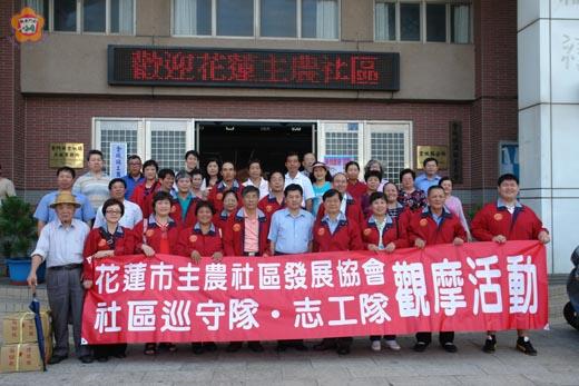花蓮縣花蓮市主農社區發展協會參訪團昨日在理事長劉冠宏帶領下抵金參訪觀摩,上午並至金城鎮公所拜訪,受到鎮長蔡輝詩與各課室課長等人熱絡歡迎,鎮長蔡輝詩均希望未來加強彼此的聯繫,從交流互訪中交換經驗,同時歡迎花蓮市鄉親也能經常組團來金參訪,促進金門的觀光發展。 花蓮縣花蓮市主農社區發展協會參訪團在理事長劉冠宏率領下抵金展開三天二夜的金門參訪行程,成員包括有里長黃金生及社區理監事、巡守隊員、社區志工共三十人。昨日上午九時前往金城鎮公所拜會,受到鎮長蔡輝詩、秘書及公所同仁熱烈迎迓,並進行聯誼。蔡輝詩並為來訪貴賓介紹金城鎮的地方建設及觀光景點,也希望能汲取規劃花蓮市好山好水寶貴意見,挹注於金城鎮的觀光發展。理事長劉冠宏則表達感謝熱誠接待,金城鎮各項軟硬體建設突飛猛進,也希望藉此學習,觀摩彼此的長處,以做為今後業務推動重要的參考,他歡迎金城鎮也能組團到花蓮市拜訪作客,促進彼此的交流。 會中鎮長蔡輝詩與理事長劉冠宏互贈紀念品,並觀賞金城鎮多媒體簡介,彼此交換工作經驗後,隨後一行人於金城鎮行政大樓前合影留念,並走訪金城市區等鎮內政經建設與觀光景點。