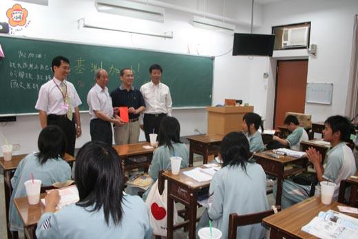 九十六年國中生基本學力測驗第一次測驗昨天進行第一天考試,縣長李炷烽趕在上午第一節考試開始前,前往金門高中巡視考場,為考生加油打氣,也慰勉試務人員及在場陪考的各國中校長及教師的辛勞。金門考區第一天前三科考試有三位考生缺考,寫作測驗缺考有六位,考試情況良好,沒有遲到或任何違規狀況發生。 國中基測昨日上午登場,金門考場在國立金門高中舉行,五所國中報名考生七百四十二位,上午考英語、自然,下午考國文和寫作測驗。 縣長李炷烽在縣政府教育局長李再杭、主任督學陳金文的陪同下,於上午八時二十分許專程前往設於金門高中的考場巡視,受到金門考區主任委員、金中校長李世峰、試務人員的歡迎。李縣長也親切與金門高中學生組成的服務隊及陪考的師長打招呼,希望在各界的鼓勵下,學子們有好的成績表現,如願的考上自己理想的學校。 金門高中提供冷氣開放的圖書館、學生教室供各國中考生休息溫書,在李世峰的陪同下,李縣長向五所國中陪考的校長及畢業班導師以及學校教師,表達慰勞之意,感謝他們犧牲假期陪同學生應考。縣政府教育局長李再杭轉送各所國中每班考生一份紅包加油打氣,由各國中校長代表接受, 各國中校長昨天動員畢業班老師、任課老師和家長所組志工隊約數十人,提供考生茶水、文具等服務,感謝金中提供冷氣開放的圖書館、藝文中心、學生教室供考生溫書。 第一天考試結束後,金門考區主任委員、金中校長李世峰表示,考場狀況一切良好,沒有特別的情事發生。考生普遍認為,「考得還不錯」,只有一、兩題比較生澀。也有同學表示英語考題難度適中,很生活化,相較於平常模擬考題目容易許多,單字、閱讀和文法各部分難易度也差不多。昨日最後一節寫作測驗,題目是「夏天最棒的享受」,考生認為題目較生活化很容易發揮,描寫夏天吃冰、吹冷氣、游泳等等都是夏天最棒的事,寫來得心應手。