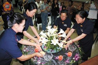 佛教慈濟基金會金門共修處昨日在金城鎮西門里辦公處二樓(金城鎮民權路90-6號),與全國慈濟同步,舉辦浴佛典禮,而為期一個月的慈濟四十一週年靜態展覽也同時同地展開,藉由「禮佛足、接花香」的浴佛儀式,以另一種形式慶祝母親節,表達對佛恩、父母恩的感恩及敬意。 金門共修處協力組組長孫曉嵐及王民偉等人表示,浴佛是佛誕節時,佛教徒用香湯灌沐佛像的紀念儀式,慈濟志工在慈濟醫院或在居家關懷時,常需要為行動不便的病人或感恩戶洗澡,他們從中體悟到在表相上是為病人或感恩戶洗澡,清除身體上的污垢,其實是幫助自己洗淨內心的塵垢煩惱,因眾生都是未來佛,成就別人的當下,也成就了自己,因此稱這項工作為「浴佛」。 五月的第二個星期日是母親節、是佛誕節,也是全球慈濟人的慈濟日,慈濟舉辦浴佛典禮,希望以最虔敬的心,藉由香花供佛、禮佛足的動作,用甘露法雨洗滌心靈塵垢,展現清淨心性,並闡揚證嚴上人行孝不能等的理念,期望每一個人都能以虔誠心,表達對佛恩、父母恩的感恩及敬意。該處也希望藉由這項活動,傳達對所有長年為社會付出的志工與會員的祝福,並透過浴佛祈福、師父開示及啟發每個人內心的善願等形式,讓到場民眾感受慈濟關懷、慈悲心的大愛散播,讓社會祥和、天下無災無難,並藉此報佛恩、父母恩、眾生恩。 目前地區的慈濟人已有三、四千人,孫曉嵐指出,慈濟的精神是,「那裡有難,就往那裡去」,只要有心,任何人都可以成為慈濟人,都可以做一個「手往下伸,幫助人的人」,就如同證嚴上人所說:「具有慈心,給人快樂,懷有悲念,能夠愛人的人,就是慈濟人」。 在慈濟師兄姐的引導下,現場爆滿的二百多位慈濟人,男女老幼,隨著和緩平靜的梵音,依序前進浴佛,玫瑰、百合、蘭花,花花世界,禮佛足、接花香、祝福吉祥,聲聲祈禱。一滴水,禮佛贖罪;一片葉,去除罪孽,在一步一履間,期許自己成為佈施大愛的神仙。 據瞭解,慈濟金門共修處自民國八十三年起,每月第一個周六上午,都會到大同之家安老組,關懷安養、養護的長者,陪伴他們聊聊天、話家常,幫他們理理髮、剪指甲,十多年來不曾間斷,因此,昨日現場也有不少大同之家長者前往浴佛,表達對慈濟人的感恩。另外,該處自民國九十四年九月起,為落實上人的「淨化人心、祥和社會」宏願,於每月第三個星期日辦理金門兒童生活智慧營活動,藉以告訴小學員們,世上有兩件事不能等,一是行善,二是行孝。(相關報導見四版)