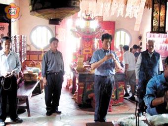 榜林村民承濟殿侯府王公誕辰,一連進行兩天的作醮,並於昨日下午迎請侯府王公神像遶境巡安,護佑村民闔家平安,熱鬧的鑼鼓聲,旌旗飄揚,為慶典活動帶來熱鬧的高潮,整個村內洋溢廟會過節氣氛。 縣長李炷烽於上午十時在縣府機要秘書周浯斌的陪同下專程到承濟殿拈香,祈求護佑地方安寧順遂。下午,議長謝宜璋也率副議長許玉昭以及議員林長耕、楊永立、李沃士和議會主任秘書張忠民、法制主任許丕贊、議事主任呂清富、會計主任洪天然、總務主任甯國平等一行人前來拈香致意,祈求神威護佑村民平安。立委吳成典、金寧鄉長李文俊、鄉公所秘書傅仰鑫也相繼前來拈香致意。承濟殿主任委員許丕漳也率同榜林村多位長老熱烈歡迎來賓的參與廟慶活動。 承濟殿侯府王公向為榜林村民信仰中心,平日香火鼎盛、有求必應,昨日適逢聖誕且週休二日,村民及旅台鄉親均齊聚同慶,共沐神恩。在兩天的作醮慶典中,副議長許玉昭、許績銘、許績新兄妹,有感神威,還願謝醮一天,吳志偉等也答謝金牌。參與慶典的村民穿著許玉昭所提供的一百五十件T恤、帽子,整齊劃一的服裝,十分亮眼。下午的巡境活動掀起廟會的熱鬧高潮氣氛,村民簇擁侯府王公神像遶境巡安,迎神隊伍浩浩蕩蕩的巡境,村民虔誠膜拜,旌旗飛揚,許文科老師所組的榜林鑼鼓隊的鑼鼓聲也響個不停,連同四起的鞭炮聲,使整個慶典顯得格外熱鬧。 據地方文史工作者薛德成、副議長許玉昭指出,承濟廟向來供奉的神明是侯府大王公、二王公、五王公、柳府千歲、曾王爺、金王爺、范將軍、太子爺、虎爺,農曆三月廿六日為大王公及三月廿七日二王公聖誕,柳府千歲為四月廿四日,而柳府千歲克溫王爺據傳是代天出巡王爺,每十二年奉旨巡狩,所以榜林村不必「摃王」,村民舉行一連二天熱鬧的慶祝活動。據了解,南關游平侯,侯府王公是一種糧官,與唐恩主公陳淵,有袍澤之誼,在金門縣誌上雖未記載,但榜林村的父老,有不少人皆聽過此一傳說,另有流傳一俗諺「榜林王公,天上不識一人」,來彰顯出侯府王公的正直、公正無私,村中長老還指出,相傳侯府王公是奉玉帝旨意,下凡視察民間,賞罰善惡。由於侯府王爺頗為靈驗,村民一遇難題,皆會前往請示神意,往往能逢凶化吉,是以平日香火鼎盛,保護闔鄉男女平安。