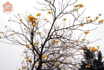 原產於南美洲的黃金風鈴木,在每年清明節前後,金黃色風鈴狀的花朵會在樹葉已掉落的枝頭怒放,耀眼的花海總讓人驚艷不已。 黃金風鈴木在金門也能看得到,主要是栽植於水試所路段和金城公墓前。另外,南雄叉路口有一小段栽植、林務所停車場前後皆有種植。金城公墓前之圍牆小道旁成排種植,則是地區長度最長的地方。 地區對於植物生態有相當研究的陳西村表示,原生於南美委瑞內拉的黃金風鈴木,別名「黃花風鈴木、伊蓓樹」,是紫葳科的「落葉性小喬木」,植株高四至六公尺,掌狀複葉,小葉四至五枚,每年三至四月間,葉片會完全掉落,開出金黃色的花朵,因花形像風鈴狀,因而得名「黃金風鈴木」,但花期只有十天左右,賞花則要把握時機欣賞。 根據了解,黃金風鈴木在北臺灣並不容易見到,不過在台北動物園卻悄悄盛開,非洲區、臺灣區和教育中心周圍都可以看到。臺灣南部有些地方用黃金風鈴木當行道樹,北臺灣則難得一見,台北人大概要去植物園或是動物園才看得到。 只可惜黃金風鈴木的花期非常短,乍開乍落只有十天左右,要賞花得抓緊時間才不會錯過,否則又要等到明年了。