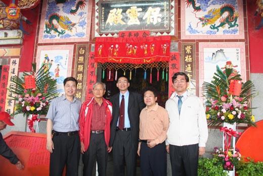 金寧鄉湖尾中堡寶靈殿管理委員會熱鬧慶祝該廟保生大帝白礁祖廟請火返駕重塑金身開光作醮慶典,縣長李炷烽也專程前往「寶靈殿」拈香,祈祝神明護佑地方安寧、風調雨順。廟內香煙繚繞,廟前戲台上的閩劇演出,讓廟慶活動熱熱鬧鬧。 農曆三月十五日是保生大帝聖誕日,各地供奉保生大帝的廟宇都熱鬧舉行作醮活動,為神明祝壽。縣長李炷烽昨日就連趕幾處廟宇,包括到古寧頭南山「保靈殿」、中堡「寶靈殿」、安岐「保安殿」以及晚間到瓊林的廟宇上香,祈祝地方風調雨順、國泰民安。 中堡地方長老楊誠栽表示,保生大帝為中堡村民的守護神,村民連續三年組進香團到大陸白礁祖廟請火,今年是第三年,於日前順利請火返駕,村民也為「寶靈殿」廟內所供俸的包括保生大帝、恩主公等十九尊神明重塑金身,並隆重舉行開光作醮慶典,同時也再美化廟宇的環境,顯得洋洋喜氣。 寶靈殿管理委員會除了進行三天的作醮,邀請境內廟宇神明張公聖君等神明以及湖下、安岐、湖美三鄉所共同供奉的「關聖帝君」到廟內作客,共沾喜氣。此外,也由台聘請新藝社歌劇團演出會炙人口的古典劇碼,吸引許多長輩鄉民相招一起到廟前廣場看戲,重拾屬於他們年代的主要娛樂回憶。 該項慶典活動今日續進行一天,下午四時許,村民會迎請保生大帝等神明出巡,掀起廟會另一波熱鬧氣氛。閩劇演出的時間,在下午三時以及晚間八時各有一場,寶靈殿管理委員會歡迎大家來看戲。