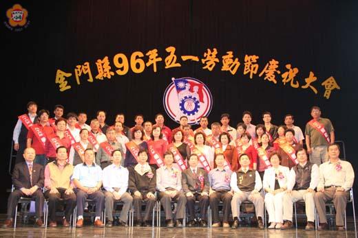 金門縣慶祝九十六年勞動節大會,於昨日舉行盛大表揚活動,會中除了頒獎表揚包括陳德鵬等三十五位各產職業工會的模範勞工外,還安排精彩的舞蹈表演與摸彩活動,向勞工朋友賀節,縣長李炷烽也期許各行各業多努力,大家共同開創金門繁榮的遠景。 慶祝大會於昨日上午八時三十分假金門縣文化局演藝廳舉行,由金門縣總工會理事長李永文主持,共有勞工代表八百多人參加,包括縣長李炷烽、議員李沃士、縣府社會局局長盧志輝、專員黃雅芬、國民黨金門縣黨部主任委員林國平等貴賓都到場觀禮。 縣長李炷烽在致詞時表示,今年模範勞工共有三位赴台接受表揚,三十五位由各產職業工會推薦,大家都相當傑出,他特別表示祝賀與感謝;李炷烽說,職業不分貴賤,在所有勞工朋友的焚膏繼晷、戮力以赴,社會才更加進步、繁榮。 李炷烽也提到,台灣工商業走向自動化後,各行各業所需的勞力需求降低,再加上很多傳統產業出走,最近這十年來,可以說是勞工朋友漫長的寒冬。 李炷烽說,最近很多新聞報導指出,十年來薪水沒漲,但由於通貨膨脹的關係,勞工的所得卻降低,很多勞工的生活被壓得喘不過氣,這都是台灣當前的危機。 相較於台灣,金門的失業率是二點四,比台灣還好很多,不過很多鄉親仍然求職不順,資料顯示,台灣有二十九種行業面臨勞工短缺,金門的勞動市場也是如此;他也提及,大陸鼓浪嶼的發展蓬勃,希望政府多透過教育,讓勞工具備職業道德、專長,創造優良的就業環境,讓勞工都能適才適所。 李炷烽話鋒一轉也指出,國防需與民生結合,國家安全才能確保,他認為國防部對於大膽等離島釋出遙遙無期,閒置的軍事設施又未開放,李炷烽說,國防、觀光應該可以結合,向國外就有很多成功的例子,他很遺憾,經過這麼多年,依然盼不到政府的支持。 李炷烽最後也說,金酒公司近期想增設生產線,增加就業機會,卻頻遭中央限制,金酒公司也很無奈,他強調金門需要各行各業一起來關心與努力,才能開創金門繁榮的遠景。 李沃士也表示,很榮幸擔任總工會的顧問,才能更貼近瞭解勞工的心聲,他推崇,每位得獎者得獎都相當不易,值得肯定,此外,他也指出,要全心投入、樂在工作,才會獲得滿足與成就;他也提醒社會局,時代不斷在進步,要多安排訓練課程,幫助勞工訓練第二、三項專長;社會就業機會少,政府要多創造就業機會,嘉惠勞工朋友。 李永文在致詞中也表示,地區駐軍減少,百業蕭條,期望政府多照顧勞工,所有勞工更團結與努力。 李永文說,金門必須重新定位,我們要有宏大遠見,全程規劃來發展金門,更要有重大建設來改變目前落後的面貌。宏偉的建設更是勞工的責任與承擔,要發展金門,必須從建設做起,他強調不論是大佛園區或是金嶝大橋,全體勞工都會支持政府,站在建設的第一線,逢山開路、遇水架橋,秉持勞工刻苦耐勞、雙手萬能的精神,為金門來奉獻心力。 金門縣今年當選全國模範勞工的包括李淑賢、李錫添、陳德鵬三人,服務金酒公司的李錫添,以及從事菜販工作的李淑賢兩人,雙雙當選今年全國模範勞工的殊榮,於昨日接受總統陳水扁的召見表揚。而服務於金門日報社的陳德鵬,也因工作表現優異,將於五月三日接受全國總工會的頒獎表揚。 此外,昨日現場還發生勞工拿不到彩券的鬧場風波,主辦活動的金門縣總工會準備一千份摸彩券現場發放,勞工大排長龍領取,不料,上午八時三十分慶祝大會開始,就停止分送彩券,引起五十多位晚到的勞工鼓譟抗議,差點打起來,場面尷尬。所幸在金門縣總工會緊急補發後,才化解一場不愉快。總工會人員說,勞動節大會彩品豐富,有的勞工彩券領了又領,有的勞工不守時,才會引起不必要的糾紛。 但是為了向勞工朋友致意,主辦單位還是準備精彩的表演與摸彩活動,此次,李炷烽提供彩色電視機、議長謝宜璋則是液晶電視等大獎加入摸彩,製造不少抽獎高潮,也讓現場不時傳出驚喜聲,現場勞工朋友們歡度一個愉快佳節。 金門縣總工會此次從轄下的各產職業工會所推薦的勞工,評選出三十五位模範勞工,當選地區的模範勞工分別是:(一)金酒公司產業工會:楊再民、王志偉、辛明德。(二)農機代耕職業工會:楊振耀。(三)自來水廠產業工會:方耀忠。(四)各業工人聯合會:何有志、李成志、陳月仙。(五)理燙髮美容業職業工會:戴能鶴、陳阿鴦。(六)機器製造五金業職業工會:洪雅明、李昭揚。(七)縫紉針織職業工會:許寶華、廖玉梅、張楊玉貌。(八)木業職業工會:洪進權、陳貴彬。(九)油漆工程職業工會:林天成。(十)水電承裝業職業工會:翁天地。(十一)車船處產業工會:曾宗慶。(十二)照相錄影職業工會:楊克成。(十三)餐飲職業工會:陳全成、黃仁宗、陳金魚、翁王華。(十四)鐘錶眼鏡職業工會:張吳傳治。(十五)營造業職業工會:王能山、王建良、翁秀玉、陳耀宗。(十六)陶瓷廠產業工會:陳兆璇。(十七)汽車駕駛員職業工會:王文通、梁章能、陳金塔、翁敏捷。