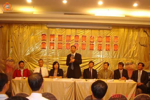 金門縣議會議長謝宜璋昨日偕同副議長許玉昭及議員拜會台中縣、市金門同鄉會,除了關懷鄉親在台生活外,縣議會並與兩會的理監事舉辦聯誼座談會,針對金門的諸多重大議題,向旅外鄉親們來請益,共同為縣政來把脈。 議長謝宜璋日昨率隊赴台參加正副議長座談會,並在座談會結束後,馬不停蹄的偕同副議長許玉昭、議員李沃士、楊永立及主任秘書張忠民、秘書陳勵志、議事組主任呂清富等一行十三人於昨日下午五時三十分假台中市「新天地」餐廳舉辦請益座談會,邀請台中縣、市同鄉會理事長黃吉瑜、理事長洪慈旭及兩會之理監事、總幹事等近五十位鄉親共聚一堂研商。 謝宜璋在致詞時表示,舉辦此次座談會乃為呼應金門同鄉會理事長聯誼會於今年清明節返鄉拜會議會時,他曾承諾在三個月內走訪各同鄉會的支票,當中最大用意是為了落實議會「親民議會、勤能議事」之議政理念,希望透過此次座談會廣泛的向鄉親請益,共同為縣政興革集思廣益,為建設金門來努力。在座談會時,謝宜璋並向鄉親介紹應邀出席的台中縣議會主任秘書蔡文雄,並表示議會為鄉親服務,並不限於金門本島,金門縣議會與台灣各縣市議會互動熱絡,業務結合,為鄉親服務的觸角,已遍及台灣二十三縣市,此次首站在台中舉辦座談會,就特別邀請台中縣議會主任秘書與會,聆聽鄉親的心聲與意見,並承諾日後鄉親有問題可就近尋求協助。 昨日座談會進行了一個半小時,與會鄉親發言熱烈,並充分表達針對多項重要議題的看法,舉凡小三通、金門大佛、醫療問題、觀光賭場、金門大橋、五星級飯店等議題,均有熱烈討論。 烈嶼鄉親現旅居台中縣的洪春棋博士,就金門大佛、銘傳設校、金門大橋及觀光人才培育等提出個人看法。洪春棋表示,大陸一年有九百五十萬大學考生,只要十萬人就可以造就一個商圈,例如台中逢甲大學只有二萬學生就帶動形成了一個商圈,他個人在這方面有做深入的探討和研究,願提出相關經驗來給縣府參考,來向中央爭取,突破招生瓶頸,他強調,這是一個機會,希望能對金門經濟發展有所助益。 另外,與會鄉親也都表示,現在雖然旅居台灣,但希望有朝一日能返回家鄉居住,惟金門的醫療資源欠缺是一大隱憂,只要醫療設備能加強,醫生素質能提高,有病均能獲得有效治療,不必動輒後送台灣;而縣府應提出相關計畫,向衛生署爭取醫療人力及設備改進健康才有保障,相信醫療獲得改善,將會有更多旅居台灣的鄉親,願意返鄉居住。 謝宜璋表示,各同鄉會所連署提案的成立本縣駐台行政協調中心的請願案,業經議會第六次臨時會決議通過,並已轉請縣府辦理,盼能具體的為在台鄉親提供更積極服務的平台。