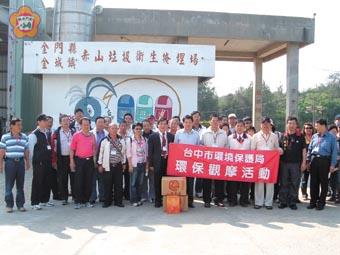 為觀摩地區垃圾衛生掩埋場操作及垃圾場復育情形,台中巿環保局秘書蔡宗賢率領相關人員抵金展開三天二夜參訪交流活動,昨日前往金城鎮赤山垃圾衛生掩埋場實地觀摩交流,鎮長蔡輝詩率同環保課長陳水友接待、解說。 當台中巿環保局參訪人員至垃圾場復育公園參觀時,現場綠草如茵、植栽復育良好,大家都難以想像下面埋的是垃圾,對於地區長期推動環境保護工作留下深刻印象,將引為將來該巿垃圾場封閉復育的重要參考。 隨後並實地參觀資源回收場和掩埋場,鎮長蔡輝詩在解說時表示:金城鎮在九十五年度進場家戶垃圾總計三、五七四公噸,同年辦理各項資源回收總計一、一七九公噸,全年資源回收率達百分之二十四.八三,若再加上廚餘回收和海蚵殼、竹木類分類回收等,垃圾減量率已超過三成,就是因為強力推行「垃圾減量」和「資源回收」的工作,赤山垃圾衛生掩埋場於八十九年啟用時原本預定使用五年的使用壽命,已經成功的延長,若能再獲得環保署的改善工程補助,有信心延長一倍以上的使用壽命。 台中巿環保局人員對於金城鎮公所環保同仁除了要執行既有的垃圾清運、資源回收和各項環境維護工作外,還要自行辦理保麗龍熱熔、玻璃粉碎等各項細分工作,表示在人力有限的情況下,有如此高的成就表示欽佩。 隨後鎮長蔡輝詩贈送金門本地特產並與參觀人員合影,並請台中巿環保局多多鼓勵各單位到金門來參觀,以促進二地的情誼。