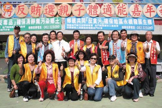 昨天艷陽高照,金門縣立運動場上親子體適能嘉年華會也活潑、快樂、躍動。將近五百位學生和家長在親子互動闖關玩遊戲中,增進親子情感,也為主辦單位推動反毒、反貪污、反賄選做了實際支持的呼應。 金門縣2007反毒、反貪污、反賄選親子體適能嘉年華會,昨日上午九時起在金門縣立運動場熱鬧登場。 活動是由金門縣政府、福建金門地方法院檢察署、金門縣觀護志工協進會、財團法人犯罪被害人保護協會福建金門分會共同主辦,金門縣立體育場、國立金門技術學院、金門體育會游泳運動委員會承辦,協辦單位有金門縣運動管理學會、國際金門獅子會、金龍獅子會、木蘭獅子會、金門縣各國小及幼稚園。 包括福建省政府主席顏忠誠、金門縣長李炷烽、主任秘書翁廷為、金門地檢署檢察長張文政、書記官長孫國粹、福建省調查處處長沈綏安、金門縣觀護志工協進會理事長呂榮平、財團法人犯罪被害人保護協會福建金門分會主任委員顏達仁、金門縣政府教育局長李再杭、政風室主任謝健茂、金門縣立體育場場長許換生等,均與會共襄參與、支持。 金門地檢署檢察長張文政指出,政府機關結合民間團體共同辦理這項大型親子活動,目的在提醒大家要重視健康,「留得青山在,不怕沒柴燒」這句話,就說明健康重要,失去健康,擁有很多財富或社會地位高也是惘然。因此,健康比財富重要,並呼籲大家要遠離毒品,一起來反毒、反貪污和反賄選,讓金門不但有好山好水,也能擁有好人好治安。 縣長李炷烽則以運動場四週掛滿宣傳標語,「無毒最美、希望相隨」、「貪污者是鄉親的公敵」、「賄選是民主的病毒」,希望鄉親在美的春天和豐富季節中,一起支持有意義的活動。 省主席顏忠誠則指出,金門一切美好,空氣清新,社會風氣純樸,但伴隨小三通試辦,也帶來一些影響,有少許毒品走私,是提醒大家要一起來,將污濁毒瘤的毒品、貪污、賄選趕出金門,讓金門居住環境與生活,都能是物質與心靈乾乾淨淨。 在簡單的開幕致詞後,參加的親子展開闖關遊戲。雖然氣溫漸漸升高,但親子投入仍然踴躍,使得運動場歡笑聲不斷。這項親子體適能嘉年華會,活動並以分區攻站(五區二十五項活動)方式進行,參加者在各關卡中過關者得請關主蓋章即過關。此次活動分為幼稚園組及國小低、中、高年級組,共四組分開評比。 遊戲安排有:「蟹行霸道」、「跑跑補給車」、「跳給你爽」、「拖拖跳跳」、「驚爆潛水艇」、「頂氣球」、「高跟鞋」、「兩相好」、「拉輪胎」、「老漢推車」、「母雞下蛋」、「大小青蛙」、「蜈蚣前進」、「合體囉」、「大象喝水」、「火車過山洞」、「跳布袋」、「釣鋼珠」、「旋轉地球」、「兩人三腳」、「折返跑」、「跨越障礙」、「灰頭土臉」、「旋轉跳繩」。並設有DIY區的竹槍製作、人仔標製作。 金門技術學院運動管理系指出,這項活動是為配合教育部推展學生體適能計畫,以及行政院體育委員會推展運動人口倍增計畫,結合親職教育,增進親、師、生在運動間培養深厚的感情,以舉辦「體適能嘉年華」為號召,廣邀家長攜家帶眷參加這項極富意義與價值的身體活動,更加帶動「全家一起動、健康、親情─動─動─動」的活動氣氛。 主辦單位指出,此次的活動主旨,係設計以活動方式,達到提昇體適能的效果。並運用現場氣氛,傳達反貪污、反賄選、反毒宣導。以及安排機會教育,指導拒煙反毒之重要性,同時融洽親子感情,以兒童影響父母的行為。
