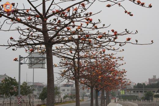 金門縣縣樹木棉樹又開花了,艷麗的花朵在枝幹舞春風,吸引著鄉親目光,也讓觀光客驚艷不已。 木棉樹在民國八十四年被票選為金門縣縣樹,其中,木棉樹又以清金門鎮總兵署的百年木棉樹最為鄉親所熟知。 木棉樹別名有斑芝樹、攀枝花、鍋木,屬於木棉科,為落葉性大喬木,原產於印尼、緬甸、印度等地,樹形高大,枝條輪生水平伸展,枝幹層次分明,幼樹樹皮和枝條具有粗的圓錐狀刺,老則脫落;葉為掌狀複葉,小葉五至七片,互生;花為總狀花序,花朵大且艷麗,花色橙紅至黃紅都有;蒴果橢圓形;種子外被絹毛。本種在金門地區生長非常良好。 木棉樹在金門分布情形,最早種植在新市里,為有名的木棉道,後陸續有國立金門農工職校及職校農場種植,桃園路亦有種植,金城莒光湖畔緊鄰道路亦有一整排木棉樹迎風招展。 目前正是木棉花開時節,艷麗的花朵正等您來欣賞。