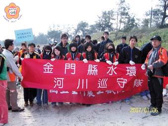 由本縣環保局輔導成立的「金門縣河川巡守隊」成立以來,積極投入溪流、湖庫、海岸、事業單位之巡守及通報等水環境保育工作,發揮守望的功能,結合主管機關公權力,保護地方水質環境,提昇生活品質。並榮獲環保署95年度績效評比為甲等,肯定地區水環境志工的努力與付出,同時鼓舞更多的環保志工投入保護地區水環境的意願,共同為創造「好山、好水、好金門」而努力。 根據本縣環保局的統計,地區目前已有六隊巡守志工隊(烈嶼隊、金沙隊,金湖隊、金西隊、金門高中隊、金門農工隊)每隊為十至三十人,平日結合學校及社區之資源,以達到民眾參與環境保育的目的。 環保局指出,目前水環境志工巡守的區域,以所屬鄉鎮的湖庫為主,頻率原則為一個星期兩次。每次巡守記載巡守工作,為達到良好之管理,各巡守隊隊長並每月將排定巡守班表提報環保局,並於每次巡守工作執行時填寫出勤表,定期送交環保局,遇有民眾於湖邊畜養牛隻應即時加以規勸,並撿拾髒亂垃圾;巡守時發現河面雜亂或漂浮物時,如無法自行清除時,應即刻通報環保局,並拍照及填寫污染源紀錄表,再由環保局承辦人員追蹤其污染源,請相關單位代為處理,力行改善,並列案管理。 環保局指出,目前環保志工巡守範圍與重點大致分為溪流、湖庫、事業機構、淨灘四部分,其中,在溪流方面,由於金門地區並無主要之重點河川,原則將以包含山外溪在內等河川(大排)為主,有關河川資料如後所示。巡守之重點主要在於河畔是否有廢棄物傾倒、廢污水任意排放等等,且以飲用水湖庫集水區河川為優先巡守之對象。 而湖庫方面,金門地區湖庫為巡守之重點,包含太湖等湖庫,其中在各巡守隊其鄉鎮行政區域無飲用水湖庫部分(金西巡守隊),其巡守重點主要以湖面清潔及湖邊週界是否有廢棄物傾倒、廢污水任意排放為主;而在各巡守隊其鄉鎮行政區域有飲用水湖庫部分(金湖、金沙及烈嶼巡守隊),其巡守重點除湖面清潔及湖邊週界是否有廢棄物傾倒、廢污水任意排放外,亦應注意是否湖庫周邊有任意放牧,以及集水區範圍是否有廢棄物傾倒、廢污水任意排放及非法不當開發等。 在事業機構方面,事業機構之巡守,主要包含列管之事業機構及畜牧業,巡守重點主要包含事業機構及畜牧業是否有繞流暗管排放等事宜,以及廢水是否未經處理即排放。另外,對於飲用水湖庫集水區之畜牧業亦應列入巡守之對象。 在淨灘方面,各巡守隊配合進行金門地區之淨灘活動。至95年12月分為止,總累計巡守時數為列嶼隊40小時、金沙隊88小時,金湖隊166小時、金西隊16小時,共計310小時。 而金門農工巡守隊於每個禮拜三的下午也會配合團體活動時間進行太湖及山外溪周邊湖庫清潔工。另金門高中隊則是運用假日進行莒光湖、雄獅堡海灘、浯江溪淨灘活動以及各湖庫水質監測活動記錄。 每隊並積極配合環保局舉辦之各項研習活動,如世界水質監測日、料羅新村人工濕地教育訓練、自來水廠觀摩、水環志工教育訓練、成果發表等訓練活動。 環保局指出,地區生態環境與漂亮的海域環境儼然已成為發展觀光的有利資源,這一群熱誠投入地區水環境保育的志工,他們都是保護地區水環境的尖兵,平日發揮守望的功能,與相關主管機關公權力結合,並將危害水質環境的行為予以管制及改善,達成保護地方水質環境,提昇生活品質的目的。也希望未來結合更多民眾的力量,加強對湖庫、海岸等的保育工作,一起來遏止水環境的污染情事發生。