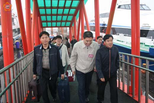大陸開放福建省民金馬旅遊後,大陸福建省省委副秘書長陸開錦昨日首次率團抵金展開三天二夜參訪,領略金門自然生態之美。縣府交通旅遊局長林振查代表李縣長到場迎接,雙方見面時氣氛熱絡。 大陸福建省省委副秘書長陸開錦等官員一行十五人,昨上午從廈門搭船小三通客輪新集美號抵金進行三天訪問考察行程。縣府交通旅遊局長林振查代表縣長李炷烽,港務處長張國土等在水頭碼頭熱烈歡迎,雙方見面時氣氛熱絡。 大陸福建省省委副秘書長陸開錦一行昨日也參觀了水頭商港聯合辦公大樓,下午則參觀馬山觀測站、民俗文化村、邱良功母節孝牌坊、魁星樓、陳詩吟洋樓。今(十一)日預定走訪太武山、海印寺,下午安排參訪文台寶塔、翟山坑道、水頭聚落、宏玻陶瓷廠、金門海濱公園。明(十二)日將前往小金門參觀烈女廟、八達樓子、四維坑道,並於下午搭乘「新集美」客輪賦歸。