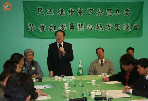 民主進步黨籍立法委員同時也是海基會董事長張俊雄昨日抵金與地方座談,聽取地方小三通的需求,受理民眾陳情,他表示,將把地方第一線寶貴的經驗務實地反映給中央政府,並希望小三通未來在人、貨中轉能有進一步的突破,建構兩岸和平穩定的關係。 民進黨八位全國不分區立委到金門設立聯合服務處,昨天輪值服務的海基會董事長張俊雄,於下午二時三十分在民進黨金門縣黨部舉行關心地方座談會並受理民眾陳情,由服務處主任陳滄江主持,張俊雄偕同經貿處副處長陳榮元抵金出席,包括服福建省政府主席顏忠誠、秘書長翁明志、陸委會金門辦事處專員蔡承棧、縣府衛生局長陳天順、交通旅遊局長林振查、研考室主任陳朝金、縣議員李誠智及黨部執行委員等多人與會。 在行政院長任內宣布實施兩岸小三通,現又擔任海峽交流基金會董事長的張俊雄指出,兩岸交流非常頻繁,去年一年台灣即有四百三十萬人次到中國大陸,經貿往來達八百億美元,但官方與官方不來往,也沒有彼此派駐機關,因此,兩岸交流引起的困擾全落在海基會身上,然而海基會不可能獨力承擔重擔,必須要靠地方政府共同投入,服務兩岸的人民。 張俊雄也主張應擴大實施小三通,他說,兩岸的客貨往來、開放中國觀光客來台,為當前最重要努力方向,尤其是觀光方面希望最近能獲得突破,國家的整體目標為建構和平穩定的兩岸關係。 不過,他也指出,海基會人員不能登「陸」,連台灣鄉親在中國發生急難,也未能獲准派員前往協助,讓人感到不解和無奈,希望兩岸從急難開始合作,慢慢擴展良性的互動關係。 他也指出,海基會雖然沒有權限來指定政策,但可做為人民與政策的橋樑,接受台商與人民的意見,並把這些意見真實的轉給政府機構,政府所訂的政策,並把政府政策的思考方向,讓關心的同胞大家都知道,也讓政府知道人民的想法。 座談會中,議員李誠智也反映地區六十五年次徵兵問題與補償問題多年來未獲解決,由於該問題設籍中央權限,他拜託張院長(前行政院長)多幫忙。而小三通人貨中轉需要中央政策鬆綁,也希望能協助地方一把。 縣府交通旅遊局長林振查也指出去年小三通六十二萬多人次當中台商百分之七十五,當中又有百分之六十六台商為台省中南部,中南部很多都是支持民進黨,地方政府受限於人力,希望海基會在金門成立台商服務處,以就近服務更多在大陸的台商。他也舉例此次金門尚義機場因為濃霧,機場關場,飛機無法正常起降,很多船運、航班權責都涉及中央,希望台金交通應變機制早日建立,以解決台商與金門鄉親的交通問題。 陳朝金也希望張俊雄前院長能協調陸委會主委早日來金聽取地方民意聲音;加速金門港口、機場的興建工程,以滿足需求;把金門醫療需求將廈、漳的台商納入一併規劃;中央儘速建立兩岸的海難救援機制,並進行深入的研討實際需求。 省主席顏忠誠指出,當年張院長在宣布小三通啟動,強調小三通「只許成功、不許失敗。」至今小三通發展非常成功,但人貨中轉部分則受限於小三通一直停留在「試驗」階段,而無法突破。 他建議小三通應終止實驗,訂定新的條例,付諸實施,不僅考慮金馬澎民眾的需求,也考慮台灣所有民眾的利益與需求,