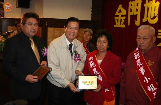 金門縣農會昨日隆重舉行九十六年農民節慶祝大會,福建省政府主席顏忠誠、縣長李炷烽等人頒獎表揚模範農事小組長、績優安全農業示範農戶,及模範農民,表彰對地區農業的貢獻。他們也指出,金門農業未來將朝向安全農業來發展,同時也希望農民朋友隨著時代腳步調整農業經營方向,並鼓勵年輕朋友投入農畜業,推動地方的農業發展。 縣農會昨日上午十時起假盈春閣餐廳舉辦農民節慶祝大會,由理事長蔡水游主持,包括福建省政府主席顏忠誠、縣長李炷烽、省府秘書長翁明志、議員李沃士、及縣府主任秘書翁廷為、縣府局室主管、各機關首長、社團首長及農會常務監事楊誠玉、總幹事黃永堆與理(監)事、會員代表、農事正副組長及選聘任人員出席及受獎之模範小組長與模範農民、績優示範農戶等二百多人到場參加、觀禮,現場氣氛熱絡。 會中首先由省主席顏忠誠頒獎表揚模範農事小組長戴德揚等五位,縣長李炷烽頒發績優安全農業示範農戶前三名農友,省府秘書長翁明志、議員李沃士、建設局長李增財、環保局長楊水森、消防局長黃怡凱、金寧鄉長李文俊等人也應邀頒獎表揚績優安全農業示範農戶與模範農民獎,並向他們道賀。 省主席顏忠誠致詞時指出,農業是每一個地方的基本的產業,農民實在是非常重要,古早時候以農立國若是遇到農作物欠收,子孫養不飽,若是豐收,心裡非常歡喜,現在工商業社會,加上地區都是旱田、雨水不足,農友沒有收成,縣府和農會都了解,也採行許多輔導措施,像縣府推動一鄉鎮一特產,如金沙的酸白菜、烈嶼的芋頭、金寧鄉的石蚵、金城鎮的高粱,及許多農特產,尤其農民所種的高粱製成高粱酒,以成為支持金門福利政策的經濟來源。 顏主席說,隨著時代轉變,農業也要做一些經營上的調整,像台灣推動的生化科學園區,金門亦可朝此方向來推廣,發展精緻農業或休閒農業;農業是根本,絕不要讓農田拋荒,可從提高農作物附加價值來著手,以增加農友收入,農民的生活改善了,就有能力栽培後代子孫更發達。 農家子弟出身的縣長李炷烽也向六十二位接受表彰的傑出農民道賀,他說,安全農業是未來地區順應市場競爭與發展的方向,是配合時代的腳步。希望未來有更多的年輕人投入農畜業,創造自己事業,推動地方的農業發展。 金門雨水少、土地貧瘠,農民耕作艱難,政府也從事各項水塘修建及補助各項農業機具、肥料等措施,希望提高農民的所得,讓農民生活改善,有信心來建立金門農業特色。李炷烽說,金門環境特殊,縣府提倡農業政策,不只補助高粱、小麥,也將訂定自治條例擴大保價收購項目,像種植牧草養牛,也將會補助,以鼓勵從事農業生產工作。 他也提到縣府為照顧農民的權益,也挖空心思在不違背中央的法令下來發放老農津貼,像此次中央審計部要求已領取老榮民晚年生活給付的一萬三千一百五十元的津貼,不得再領取其他如老農津貼、老人年金,為此縣府也很頭疼,他也赴台拜會了退輔會主委,並將與立委吳成典再與審計部協調。 他表示,由於該項老人津貼(中央)的發放,並不是地方要發就發、要停就停,審計部不同意,社會局承辦人員也不敢簽,違法的事做了,承辦人被關,不但要保護大家的權益,也要保護承辦人。老榮民的這一部份還要想想辦法。 他也指出,有的鄉親也向他反應,有些退休領取退休金的民眾,每個月還領老人年金,是不是把這些有限資源轉做照顧最有需要的殘障弱勢者。 他也表示,縣府很多政策需要農友來協助配合,像許多公共建設因為卡到土地問題,無法順利推動,也影響了預算的執行率。而縣府去年預算執行率達到將近百分之八十八,這也需要大家來瞭解事實,公平對待政策。 省府秘書長翁明志指出,傳統農業已陷入困境,科學化、機械化是知識經濟時代的潮流,只有跟著學習進步,才能讓農業發展起死回生。 每一年農民節慶祝大會都會到場的縣議員李沃士指出,他是以農家子弟的心情來體會農民的狀況,在議會問政時,只要農會理事長蔡水游提出的好的農業政策與意見,都會全力來支持配合。 「有改變才有生機!」因應未來金門農業環境的改變與調整,希望縣府能多出點力把方向帶出去,為大家打一條路,相關的法令需要議會同意的,一定會給予支持。 理事長蔡水游指出,這幾年縣府積極推動安全農業,有機健康無毒蔬果政策,這與新農業運動不謀而合,前年縣府推動的漂鳥築巢農業措施也頗有成效,有信心吸引更多優秀的年輕人投入農業。 他說,金門的農業,「產」沒有問題,並需要有「銷」的通路,而有機農業、安全農業,都符合未來的生態發展目標,希望農民抽空赴台接受短期的訓練,並在縣府的貸款或補助各項資材,從事農畜業的經營與生產,讓金門成為有希望、有安全農業、先進的美麗之島。 在表揚大會後也舉行歡宴模範農民餐會及幸運摸彩活動,各界首長到場祝賀,與農民朋友共同歡慶農民佳節。