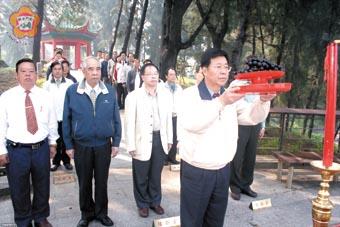 澎湖縣湖西鄉葉許氏宗親會理事長許進強一行三十六人來金進行尋根之旅,昨日一大早,就到有四百多年歷史的南門的許氏宗祠宗祠祭祖,緬懷祖德福蔭子孫,在各地有很好的發展。許進強一行人也與在地的許氏宗親進行聯誼交流,拉近澎金一家親的宗親情感。 許進強一行人於上午八時三十分前往南門許氏宗祠宗祠祭祖,受到金門許氏宗親會理事長許庸文、宗老許福臨、許丕謀和理監事的熱忱歡迎,醒目的歡迎布條以及濃濃的鄉親味,讓客人相當的感動。許庸文代表宗親表達歡迎之意,也贈送「八仙過海」紀念匾額,希望澎金同根的宗親多多交流,增進情感,也可相互提供資源與扶助,讓許氏宗族愈來愈昌盛。 許進強表示,他們的根在金門,也感懷祖德的福蔭,讓子孫們到澎湖以及台灣各地落根,也有很好的發展,這一趟尋根之旅,正是要表達不忘本的情懷。 許進強也表示,在澎湖的許氏宗親,非常高興的參與金門宗親會活動,只要宗親會有需要或是需求,一定會提供協助。他也代表宗親贈送「源遠思親」的匾額,表達出飲水思源的情懷。 許庸文也表示,南門的許氏宗祠,已經有四百多年的歷史,長期扮演凝聚宗親情感的角色。該宗祠是明朝萬曆年間所興建,因年久失修,前年才花了六百五十多萬元進行修繕,沒有繁複的雕樑畫棟,但古樸當中卻越見風華。他說,金門地區以五大姓為主,分別為陳、許、蔡、李、黃,其中許姓與蔡姓為官者最多,許姓從明朝起,文官武將就有上百位,較知名的有許獬(人稱會元公),與許福(任萬曆年間監察御史),宗祠當中翰林、進士、會元、舉人匾額,不勝枚舉,許氏族人人才輩出。 許庸文說,許氏宗親每年有兩次大型的祭祖活動,就是俗稱的「吃頭」,分別安排在清明與冬至,他歡迎澎湖宗親也一起來參與這項深具意義性的民俗活動,促進兩地宗親的情感。