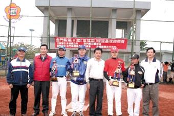 第八屆金城盃慢速壘球錦標賽,在經過十七支球隊一連兩天總計卅一場次的激烈競技,於昨日下午圓滿落幕,並由鎮長蔡輝詩等人頒獎表揚冠軍隊伍榕樹下自助餐隊及績優之個人獎項。金城鎮長蔡輝詩也相約明年金城盃大家再次捧場、參加,讓慢壘比賽更為熱絡進行,提昇地區慢壘水準。 金城盃慢壘錦標賽,昨日的賽程中由於有多場攸關晉級前四強,因此參賽的隊伍莫不卯足了勁全力以赴,各隊球員將士用命,球員拚鬥十分激烈,各隊均展現團隊的精神,希望能擊退對手,比賽過程吸引許多觀眾前往觀戰,整個比賽於下午五時二十分告一段落。 這項球賽的閉幕典禮於昨日下午五時三十分在縣立慢速壘球場舉行,由鎮長蔡輝詩、代表會主席陳天成、廈門台商協會會長曾文遠分別頒發獎盃及獎品予優勝的隊伍與個人,金城鎮公所秘書黃耿銘、社會課長蔡木川等均在場觀禮、參加,肯定他們在球場中的優異表現。 第八屆金城盃獲獎的隊伍與個人分別是: 社會組冠軍:榕樹下自助餐隊。 亞軍:俊輝燒物隊。 季軍:葡京餐廳隊。 殿軍:廈門台商協會隊。 最佳教練獎:榕樹下自助餐隊陳翔景。 功勞獎:榕樹下自助餐(白)隊張國光。 美技獎:榕樹下自助餐(白)隊莊天祥。 打擊獎:第一名葡京餐廳隊王舜棋、第二名廈門台商協會隊張書堯、第三名葡京餐廳隊許丕源。 美技獎:俊輝燒物隊張韶宇。 優勝隊伍:金門後憲、地政局、昌亞杉、鳳山巨東、王大夫一條根、海峽實業、駿益營造、靖海堂。 學生組冠軍:金門高職(A)、 亞軍:金門高中(A)隊。 季軍:金門高中(B)隊。 最佳教練獎:黃國偉。 美技獎:周子揚。 優勝隊伍:金門高職(B)、金門技術學院。 金城鎮長蔡輝詩也感謝各界組隊參加,兩天來球員與工作人員熱烈的投入,感謝裁判,二日來辛苦的「執法」,讓這一次規模陣容最大的慢壘賽,在公平的競賽中一較球技,讓比賽圓滿結束;他也希望明年金城盃大家再次捧場、參加,讓慢壘比賽更為熱絡進行,提昇地區慢壘水準。