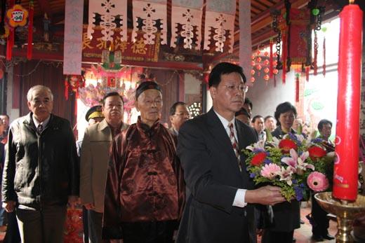 農曆二月初二日為「開浯恩主」牧馬侯陳淵聖誕,昨日上午縣長李炷烽率金門各界在金城鎮庵前牧馬侯祠舉行公祭典禮,追懷陳淵開發金門德澤,而庵前村民也自前日一連作醮兩天,祈求「恩主公」永佑浯島平安。 公祭儀式於昨日上午九時在金城鎮豐蓮山三級古蹟「牧馬侯祠」舉行,由縣長李炷烽擔任主祭官,金門國家公園管理處處長黃文卿、金城鎮長蔡輝詩、金沙鎮長陳昆第陪祭,地方各界首長、學校校長、庵前長老等人與祭,縣長李炷烽並致贈爐敬金,並依循古禮行上香、獻花、獻爵、獻饌、獻果,場面莊嚴隆重。 除各界公祭儀式外,金城鎮長蔡輝詩也帶領鎮公所各課室人員參與祭典,庵前村民也作醮二天,慶祝恩主公陳牧馬侯冥誕紀念日。而牧馬侯陳淵神輿並繞境巡安,村民也都以虔敬的心,在門前擺設香案祭拜,表達對恩主公的敬意,並提著祭品到廟內上香膜拜,祈求恩主公庇佑,家家平安。 牧馬侯祠又稱「孚濟廟」,根據文獻記載,明朝以前的牧馬侯祠是一座擁有七進的殿宇,規式壯麗,惜傾圯多年,現在前三落殿宇的規制,大約為道光年間時重建後的規模。 牧馬侯祠位於庵前村,已列為國家三級古蹟,供奉「開浯恩主」陳淵。歷代幾經修葺,原三進式廟宇是道光二十三年所修,縣府為保存牧馬侯祠風貌,爭取內政部經費補助工程費三千餘萬元,自八十四年動工修護,並於八十六年十二月完工,牧馬侯祠修護工程是金門縣第一座進口使用大陸福州杉原木,三進的廟宇,名家的剪黏、彩繪、庭園造景,使牧馬侯散發傳統建築優美風範。 相傳陳淵為唐代光州固始養馬戶,在德宗貞元十九年(西元八○三年)率十二姓氏族來金,選擇地形如蓮花瓣,水草豐沛、土地沃腴的豐蓮山麓駐紮牧馬,陳淵善於養馬,驪黃牝牡,千百成群,能令馬兒聽從號令,有「馬祖」之譽;陳淵在牧馬之餘尚開墾山林,化荒蕪為良田,種植五穀,奠定了浯洲開發基礎,因此為島民尊稱為「開浯恩主」。陳淵是在唐德宗貞元年間,奉派到金門牧馬,當時隨行的有蔡、許、翁、李、張、黃、王、呂、劉、洪、林、蕭等十二姓移民,自此生聚日藩,為地方開拓之始,民眾為感念其德澤,尊稱為「恩主公」,建廟奉祀。 地方相傳陳淵生前並未封侯,在他物化後,鄉民泥塑其像,尊為「護驥將軍」,歲時禱祝,有求必應,元順帝年間更顯靈退倭護民,因此,朝廷特別敕封為「福佑聖侯」,賜建七進廟宇,名曰「孚濟廟」。