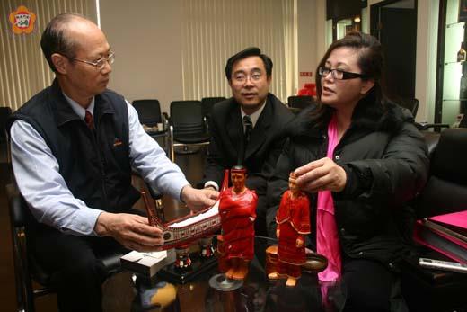 台灣紅公司負責人李慧芬看好金廈小三通商機和金門觀光潛力,昨天專程帶著台灣達悟族人、獨木舟的陶瓷酒瓶樣品,和金酒公司董事長李榮文洽談合作事宜,雙方對於合作產製原住民紀念酒的興趣濃厚,初步決定下半年開設台灣紅公司金門旗艦店,將台灣精品包括金門高粱酒、陶瓷介紹給大陸觀光客,推銷台灣、金門產品和文化。 台灣紅公司負責人李慧芬,昨天上午是由中國國民黨籍立法委員吳成典、辦公室主任李炳團和縣府建設局專員楊廷標等人陪同,專程到金門考察市場,參觀水頭、湖下和民俗文化村等傳統聚落,及拜訪全國唯一「官窯」的金門縣陶瓷廠、和金酒公司,考察投資市場商機,並深入了解洽談合作相關事宜。 昨日李慧芬特地從台灣帶來台灣達悟族人、獨木舟的陶瓷酒瓶樣品,於下午前往金酒公司拜訪董事長李榮文,並就做好的陶瓷酒瓶樣品洽談進一步合作事宜,肯定金門高粱酒也是台灣精品,雙方對於合作產製原住民紀念酒的興趣濃郁,希望金門旗艦店和紀念酒都能在下半年在金門一起推出。 李慧芬指出,過去想像金門處處是碉堡、軍隊,但這次實地走訪,才發現是空氣清新、環境整潔、花木扶疏的海上公園,更看到了商機,金門在中國大陸東南 沿海有很特殊地位,過去是打不敗的戰地,將來是很重要的觀光渡假勝地。 李慧芬表示,一年前應廈門華天集團邀請專程到廈門考察投資環境,對方安排食宿在可看到金門的酒店,讓她發覺大陸人民對金門、台灣很嚮往、充滿幻想,因此,雖然對方開出很優渥條件邀請在廈門開設旗艦店,但她還是決定台灣紅就開在金門,讓對岸人民小三通到金門買台灣的精品。 李慧芬說,澳洲的「黃金海岸」在三十年前只是漁村,但在很好的規劃下,發展成為國際觀光城市,金門四面環海,有很好的條件,假以時日也將成為台灣的「黃金海岸」。 此外,李慧芬也透露,想到金門開店有個人的因素 和感情在內,李慧芬說,前夫曾在金門當預備軍官,曾把金門故事說給她和小孩聽,也拿照片給大家看,引以為傲,曾一直說要帶她到金門參觀,因此,她不但要金門開店,也要做得很好。 李慧芬的構想,是在金門尋覓閩南式的古厝,做為台灣紅公司金門旗艦店店址,她說,台灣紅販售的各種商品標榜是台灣精品,必須具有特色,以金門古厝做為旗艦店,正如也在台北市尋找古建築開店一樣,希望讓大陸觀光客小三通買到高貴不貴的台灣精品,也了解台灣文化。