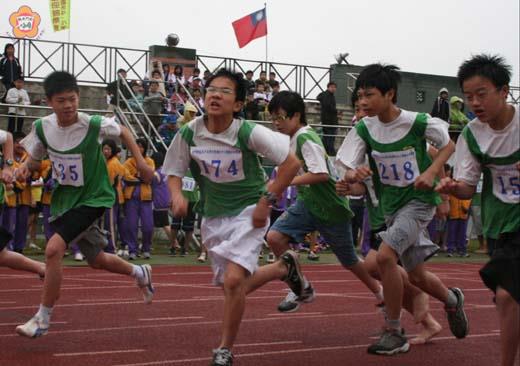 金門縣金湖學區九十五學年度國民中小學聯合田徑賽在昨天登場。這個一年一度的金湖盛事,今年共有六百零九人報名參加。他們在一百四十八場預賽和決賽中,各自追尋著大大小小的興奮與感動。 金湖學區的成員包括:開瑄國小、多年國小、正義國小、柏村國小、金湖國小、金湖國中。會長吳啟騰表示,這場運動會與歷屆運動會最大的不同,就是特別強調環保,因此第一天的賽程結束之後,並沒有遍地垃圾、慘不忍睹的情形。 昨天早上的賽程是在雨霧濛濛的情況下進行。最早的決賽是表定八點鐘舉行的七男組八百公尺徑賽,緊接著就是七女組八百公尺徑賽。金湖國中校長吳啟騰、開瑄國小校長李錫南、金湖國小校長張樾等,都準時在場觀戰。 七男組的八百公尺比賽,有兩位男生選擇光著腳丫子上陣。其中,七年五班李念浯拿到了八百公尺決賽的冠軍。他表示,赤腳跑感覺比較輕快,但跑起來卻覺得痛。他的成績是二分三十九秒零九,比第二名快了二十四秒。 七女組的八百公尺比賽,原本一路由七年四班的陳筱琪領先;在最後的二十幾公尺,七年三班的黃詩雯趕了上來,接近終點的一剎那,越過了陳筱琪。黃詩雯只知道在最後關頭卯足全力,並不知道自己最後竟衝出了第一。這場比賽,黃詩雯的成績是三分十三秒八九;陳筱琪則是三分十四秒。 上午九點,九男組的跳高決賽登場。這場比賽有十二名選手。進行到一百五十八公分高時,只剩下九年六班蔡志堯、九年二班陳子豪、九年一班吳孟霖三人繼續挑戰。蔡志堯一躍而過,奠定勝績。陳子豪,一試不成,再試之後,也跳過去了;同學們則興奮地說:好像在飛!吳孟霖二試不成,先沈住氣,重新計算步伐,清理一下腳下的土地,終於在第三次起跳後躍過。接下來,三人各以三次的機會挑戰一百六十公分的高度;由於三人都沒有跳過,就以一百五十八公分的高度計算成績,並以起跳次數定優劣,由蔡志堯獲得冠軍。 六女組鉛球決賽也是在上午九點進行。多年國小六年級的女生吳蓓蓓,夾在十五名選手中,看起來最是嬌嬌小小,由於學校班級人數不多,她一個人就參加了五個項目;她看起雖然不像運動健將,卻讓人感到很有運動精神,認真地發揚了志在在參加的風度。六女組鉛球的前三名是李芷婕、李詩涵、謝詩婷。 同一時間(上午九時)進行的七女組鐵餅決賽共有十二人參加。湖中的籃球校隊陳瑜也是選手之一。她覺得讓鐵餅飛出去之後,會產生一種就感。陳瑜每天都有運動半小時的好習慣。天氣好時,就會特別想運動;心情不好時,也會藉運動改善心情。她說,若是久久不運動,就會覺得怪怪的。昨天,她在七女鐵餅拿下第一名,還拿到鉛球比賽第二名。 五年級的跳遠決賽是在上午十點舉行,共有十六人參加。曾經打破跳高紀錄和跳遠紀錄的張皓表示,運動讓他身體好,長得高!這次,他又拿到跳遠的冠軍。 金湖學區運動會共有兩天賽程。昨天(三月十六日)上午有四十八場比賽;昨天下午有三十八場比賽。今天(三月十七日)上午有三十八場比賽;下午還有二十四場比賽。 根據實施要點所揭示的主旨,金湖學區運動會的舉辦,是為了推行體育,培養團隊榮譽,以達到身心健全、文武合一的教育目標。 記者張建騰/金湖報導 金湖學區九十五年國民中小學聯合田徑賽在國小五男組跳高項目上,一到四名都破了大會紀錄,五、六名則平了大會紀錄。六男組四百公尺接力,前三名都破了大會紀錄。 五男組跳高共有十六人參賽,取前六名。第一名是開瑄國小蔡金福,成績一點二公尺,破大會紀錄(一點一三公尺)。第二名多年國小呂嘉偉(一點一八公尺)、第三名金湖國小張皓(一點一八公尺)、第四名正義國小陳冠霖(一點一五公尺),也都破了紀錄。第五名開瑄國小陳鑫富、第六名金湖國小林正豪則是平大會紀錄。 五男組鉛球第一名金湖國小陳廷以九點四四公尺破大會紀錄(九點一二公尺)。 六男組徑賽四百公尺接力名次如下:第一名金湖國小六○二(五十九秒二四)。第二名柏村國小(五十九秒四四)。第三名湖小六○四(五十九秒七七)。第四名湖小六○一。第五名多年國小。第六名正義國小。前三名都破了大會紀錄(六十五秒六四) 七男組四百公尺接力,名次為:七○四、七○六、七○三。湖中七年四班以五十四秒五三破紀錄(五十五秒),得第一。(以上成績由大會提供;若有誤差,以大會公告為準)
