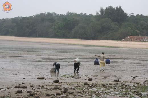連續幾天寒流低溫,讓很多人凍得直發冷。倒是昨天難得太陽露臉,氣溫回升,又逢週末假期,海邊就也出現拾螺的民眾,享受拾海產的樂趣。 雖然天氣還是涼涼的,但起個大早的討海人,已挑著竹簍下海去拿新鮮的海蚵。也有父母帶著子女在海灘撿拾貝類或挖小螃蟹,不管收穫多少,趁著好天氣走出戶外,心情也會放輕鬆喔!