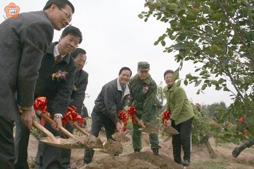 九十六年植樹節活動昨天上午在金湖鎮的新塘垃圾場舉行。數百軍民合力種植了榕樹、白千層、潺槁樹、田代氏石斑木等各式苗木,共計三千四百多株|在金門島的東南端,拼成了一大片狀似「安全帽」的海岸防風林;希望藉此化臭腐為神奇,成為海岸的屏障,並為新塘村民,傳送清新的空氣,以取代長達三、四十年的異味「薰陶」! 今年的植樹節是由金門縣政府、林務所、環保局、金湖鎮公所攜手合作,並選擇新塘垃圾場做為綠美化的對象。金門縣長李炷烽表示,造林的工作是先苦後樂的,只要付出,就能先憂後喜;他以此呼應金湖鎮長李成義的說法|李成義認為在新塘植林,是一個「化腐朽為神奇」的行動。 福建省主席顏忠誠希望金門能有百億投資,藉由大舉綠化,讓金門成為生態、保育、旅遊、休閒、觀光的海上樂園、美麗之島|不要輸給長江口的崇明島。金指部(金防部)指揮官楊天嘯認為垃圾場經綠化後,真的是美輪美奐,這樣的經驗,正是今後該努力的方向。 參加植樹節活動的單位包括金湖鎮公所、林務所、金指部、各社區、各政黨地方黨部、縣屬各單位、縣議員、中央駐金單位、新聞媒體、金湖國中、各國小(多年、柏村、開瑄、正義、金湖)。 植樹區的分布圖,看起來就像是一張安全帽的側面圖(也像大腦的左右切面)。金湖鎮公所和林務所分配在帽簷的位置;金湖國中位在覆耳的部分;金門農工在眼部;省主席、縣長等人的所在位置,則相當於腦部的視丘或下視丘。 金門縣殯葬管理所所長楊誠友是第一個到達植林區的機關首長;殯葬所的綠美化一向不落人後,昨天又得到機關學校環境綠美化的第三名。 多年國小校長黃奕展、卓環國小校長林英生、上岐國小校長王先勝等,除了參加植樹活動,也藉植樹節的到來,教育學生造林的重要。王先勝表示,植物可以保護環境,製造新鮮的空氣。黃奕展表示,多年國小環境的改善,就是綠化的成果。林英生將學校後山規劃為植物步道,除了做為環境教育之外,還讓每位學生認養三種以上的植物。 金指部主任陳世團、金東旅旅長郭瑞祥、金東旅主任林文銘等,都在植林活動之列。陳世團說,看到一片欣欣向榮,讓人感到亢奮。郭瑞祥表示,老樹發新枝,新樹吐嫩綠,都是昌盛綿延的好氣象;植樹是一種福蔭後人的工程。前人種樹蔭今人,今人種樹蔭後人。林文銘表示,樹木可以造氧,人人都應該為世界生命的泉源,盡一份心力! 金湖鎮長李成義、金湖鎮代表會主席呂瑞泰是以「地主」的身份出席活動;出席者當中,也有新塘垃圾場真正的「鄰居」。呂瑞泰希望人人響應造林運動,創造綠色的地球。李成義認為林木復育的工作能選在新塘,意義非凡;希望掩埋場不再被討厭,不再引起抗爭。 望著滿目的苗木,讓金門農試所所長李國榮想起了一首詩:「自小刺頭深草里,如今漸覺出蓬蒿。世人不識凌雲木,直到凌雲始道高。(杜荀鶴︿小松﹀詩)」這些苗木,眼前雖不起眼,一旦成長茁壯,人們就可以感受到他們如何以自然之道,貢獻於環境。 金門縣議員王再生、金門地檢署檢察長劉家芳等,分別在會場致詞。王再生提出果化金門的建議。劉家芳說他在金門已經過了五個暑假,金門的夏天不會像澎湖那樣溼溼黏黏,主要就是綠化做得好。 林務所所長葉媚媚是植樹大會的主持人。她表示,這次是以期待「麻雀變鳳鳳」的精神,希望讓垃圾山變成環境品質好的好厝邊。 根據林務所提供的數據,本次活動總計種植白千層一百零七株、榕樹一百一十八株、黃槿一百五十株、小葉赤楠三百株、田代氏石斑木五百株、草海桐三百株、金露花二千株;以上合計三千四百七十五株。其中,黃槿因為有枯萎的現象,改以潺槁樹取代。 縣長李炷烽表示,植樹活動每年都在舉辦,不是為了特定的誰而辦。這幾年縣府已經在金湖鎮、金沙鎮各辦過兩次,在金城辦過一次,委託烈嶼辦過一次;明年希望能在已經完成排雷工程的西山靶場舉行。