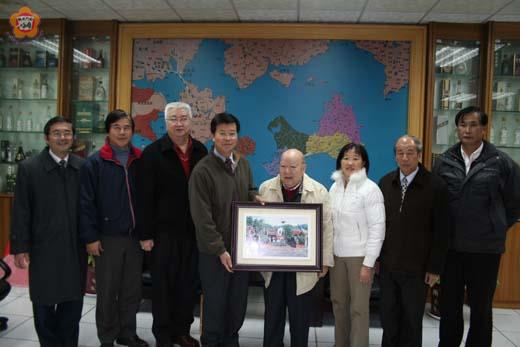 事隔近四十載,縣長李炷烽等人與年高八旬的高中老師王維綺(圖右四)相見歡! 縣長李炷烽表示,當年擔任金中教官的王維綺,是他的高一導師。王維綺說,因為知道學生當了金門縣長,特別在離金38載後,首度返金探望,並向其道賀。 昨日陪同王維綺前往縣府拜會縣長李炷烽的,還包括王維綺當年的許多學生,如:湖中校長吳啟騰(左一)、社會局長盧志輝(左二)、教育局長李再杭(右二)、地區文史工作者黃振良(右一)等。