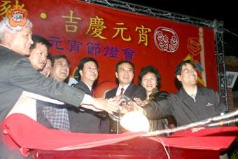 為歡慶九十六年元宵節,縣府自昨日起一連三天在金城鎮朱子祠(浯江書院)舉辦元宵節花燈展覽和猜燈謎活動,晚間並由縣長李炷烽等人主持花燈展覽點燈儀式,隨後炫麗煙火與精緻花燈隨即點燃,現場隨即響起一片熱烈的掌聲與歡呼,小過年的歡樂喜慶漾在每個人的笑容裡。 元宵花燈展覽點燈儀式昨日晚間六時三十分起在古意盎然的朱子祠舉行,由縣長李炷烽主持,點燈儀式開始前並由中正國小的小朋友表演祥獅獻瑞揭開序幕,現場湧入不少鄉親前來觀賞花燈,穿流不息賞燈民眾,將會場擠得水洩不通,而文化局、國稅局、中華聯網寬頻所精心準備的三千盞花燈,也在半小時內被索取一空。 昨晚元宵花燈展覽點燈儀式,由縣長李炷烽、立委吳成典、福建省政府秘書長翁明志、金指部副指揮官張榮中、政戰主任陳世團、金城鎮長蔡輝詩、縣警察局長陳瑞通等人共同按鈕點燃「歡樂金豬‧吉慶元宵」主燈,會場也響起一陣歡呼聲,並施放五彩煙火,將夜色點綴得璀璨明亮。 李炷烽在致詞時首先祝賀大家元宵節平安,他並指出,元宵節天官賜福,感謝上蒼賜給我們一個安定的社會,但也不要忘記了追求和平的努力,希望世世代代都能在上蒼的庇佑下永久安定。今年在古意盎然的朱子祠舉行元宵節,感謝各單位共襄盛舉,值此金豬之年,亦是十二生肖排行中從老鼠的智慧、牛的勤勉、老虎的威望、兔子的可愛、龍的神奇、蛇的忍耐、馬的靈相、羊的孝心、猴的活潑、雞的守時守信、狗的忠誠,到今年的金豬之年,每個生肖都代表著非常深刻的涵意,特別是金豬歷盡了十二年的智慧,這些年來大家有過成功、失敗、順境與逆境,過去也成了歷史陳煙,無論是成、敗、美好與失望,到此金豬之年應好好體會金豬的憨厚、可愛、吉祥,過去也就讓它一轉成空,希望能給自己一點慰勉、安慰,能在此佳節來臨時有個圓滿吉祥的丁亥年,祝福大家能如豬的憨厚、可愛、吉祥、人生如意圓滿。更希望地區的進步活動充分顯示金門追求歡樂的慾念,讓金門永保和平,讓鄉親永保健康。 立委吳成典、福建省政府秘書長翁明志、金指部副指揮官張榮中、政戰主任陳世團、金城鎮長蔡輝詩、縣警察局長陳瑞通上台也語多祝福,祝福大家身體健康、地區安定繁榮發展、兩岸永久和平相處、友誼長存、新的一年萬事如意、事事順心。 稍後縣長李炷烽與夫人吳麗鳳等人也領隊率領中正國小五百多位學生展開提燈遊行表演,由金城鎮朱子祠出發繞行城區四境,遊行隊伍包括有鼓吹隊、化妝提燈隊、舞獅隊、舞龍隊、管樂隊、鼓號隊、旗幟隊。李縣長一路不斷向民眾揮手致意,祝賀鄉親新年及元宵節快樂,沿途經過大小廟宇也一一前往上香,整個遊街隊伍綿延數百公尺,週邊民眾紛紛駐足圍觀,街頭充滿過年喜慶氣氛。 今年花燈展覽縣府除了在朱子祠由金指部負責製作大型的坦克主題燈,同時邀請機關、社團和學校踴躍製作數百盞大小型花燈參展,也使得昨晚朱子祠內外燈火璀璨,到處充滿喜氣洋洋與熱鬧氣氛。 昨日晚間的另波高潮為文化局承辦的猜燈謎活動,吸引大人與小朋友爭相湧向台前,大家腦力激盪、動動腦,努力搶答,結果有許多人都是滿載禮物而歸,也讓民眾歡度一個兼具知識性、娛樂性與趣味性的傳統元宵節。 文化局長李錫隆也說明,觀賞花燈是元宵節的重要活動,閩南地區還有「鑽燈腳」的習俗,「鑽燈腳」就是元宵夜婦女朋友們故意在燈下鑽來鑽去,由於閩南語發音中「燈」和「丁」同音,取其「添丁」的吉意,所以有「鑽燈腳,生男丁」的諺語,許多民眾衝著討個好彩頭,也頻頻在燈下打轉,也是另類有趣現象。