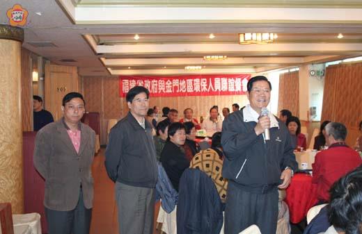福建省政府主席顏忠誠昨日邀約大金門四鄉鎮環保人員餐敘,他肯定環保人員平日默默付出,為金門環境整潔盡心盡力,是守護地區潔淨環境的大功臣,他也期許大家新的一年裡更加力行環保,守護家鄉環境,讓金門明天更美好! 省主席顏忠誠昨日中午率同省府秘書長翁明志、委員許燕政,及福建省選委會總幹事陳鏡泉、省府第一組組長楊誠璽、第二組組長董巖山、第三組組長張金成、會計室主任張賜、代政風室主任蔡顯然參議、專員李振銳等人,邀集大金門地區環保人員於金瑞大飯店設宴共聚,慰勉環保人員終年的辛勞,包括環保局局長楊水森、課長楊建立、李欣、張金為,及金城鎮長蔡輝詩、金寧鄉長李文俊與各鄉鎮秘書、環保課長、清潔隊長等均應邀出席。 顏主席向環保人員拜晚年,祝賀大家金豬年身體健康、萬事如意、家庭幸福。 除夕正當家家戶戶忙著年終除舊佈新大掃除,準備好好的與家人圍爐慶團圓時,環保人員卻正默默的投入更長的時間與更多的精力,賣力的清理這些年節前大量湧出的垃圾,甚至忙到連除夕與家人團聚吃年夜飯的機會都成為奢求,他們並非不在意團圓守歲的感覺,只是為了要讓大家能過個乾淨整潔的好年,所以奉獻出個人寶貴的團圓時光。 對於這些可敬的環境守護者,長年對地區環境的貢獻與付出,顏主席昨日也表示感佩與感謝。 他說,在春節期間,當大家仍在歡渡年假之際,清潔隊員卻必須提早收假,加班清運垃圾,讓大家在開春上班就有一個整潔乾淨的環境,尤其是春節期間返鄉過年的鄉親看到家鄉的美麗乾淨的環境,更加深了愛鄉情懷。而金門以觀光為發展主軸,四處的環境整理得整齊清潔,提昇金門的觀光賣點,吸引更多的觀光客到訪,促進地區的商機與發展,環保人員是最大功臣。 金門是我家,環境整潔靠大家!顏主席也希望大家都能疼惜清潔人員的辛勞,並化為實際行動,珍惜環境與有限的資源,在新的一年裡更加力行環保,配合環保政策,營造一個更乾淨漂亮的金門。 環保局長楊水森也代表環保人員感謝顏主席及省府長官的支持與款待,他也期許環保人員未來繼續努力,讓金門環境整潔向上提昇。他也坦言今年春節垃圾清運環保人員的努力仍有缺點,像垃圾不落地的部分,春節期間有的民眾於非清運垃圾時間將垃圾棄置於道旁,影響環境觀瞻,未來環保同仁仍會持續努力改善,讓地區環保工作做得更好。 在聯誼餐敘中,省主席顏忠誠、秘書長翁明志、委員許燕政,及各組室主管、鄉鎮長也逐桌向環保人員敬酒致意,場面相當溫馨熱絡。