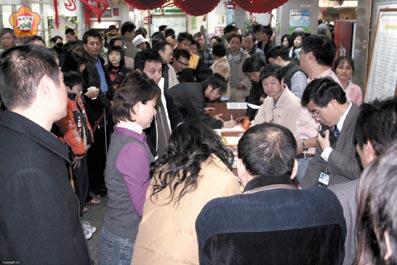 春節連續假期尚未結束,昨日尚義機場搭機人潮滾滾,赴台航線班機班班爆滿,各家航空公司櫃台前出現旅客大排長龍補位,下午交通部民航局局長張國政抵尚義機場拜年,金門鄉親高喊加班機的聲音傳遍航空站,然張國政卻不聞不問,現場怨聲四起,直到晚上十時許旅客才帶著大包小件的行李,帶著疲憊心情離去。 昨日是春節連續假期倒數第三天,飛往台灣班機班班爆滿,候補機位一票難求,許多旅客就在航空站過夜等待隔日候補機位,尚義機場凌晨二時多即出現排隊補位的旅客,一大早各家航空公司櫃台前出現旅客大排長龍補位,估計有七百多位金門鄉親與觀光客登記補位,其中,往台北的航班最搶手,登記人數高達五百六十人,不過,由於旅客報到率高,幸運補上機位人數區區可數。返回工作崗位的台商及眷屬,昨日也循小三通管道,從金門搭船到大陸廈門。 為了等飛機,金門鄉親不但花了整整一天的功夫,還得在機場和航空公司「無辜的」小職員們大小聲。不願吵架的鄉親們,早就乖乖地回家「等消息」了。隔天一大早,他們還得再去尚義機場繼續大排長龍補位「等等看」。金門鄉親們想要及時返回工作崗位的簡單願望,仍然不能獲得服務保障。 昨日下午交通部民航局局長張國政抵金門尚義機場拜年,金門鄉親高喊加班機的聲音傳遍航空站,然而張國政卻當作沒聽到,不聞不問,現場怨聲四起。有鄉親表示,記得前年春節期間,面對金門鄉親的強烈要求,民航局張國政局長建議金門人「自己開一家航空公司」的說法,讓我們記憶猶如在耳,有這樣的民航主管官員,難怪會有臺金不通暢的航空交通。 有鄉親指出,金門人實在是太善良了,如果金門人民還是用戰地政務時代「惟命是從」的精神,來面對航空公司,他們就永遠不會認真調度航班,來滿足金門假期流量突增的彈性需求!提議臺金航線的旅客如果再遇到航空公司無法加開班機,應該要堅持圍堵航空公司的櫃檯,給他們製造一些實在的困難。這樣才會讓航空公司的高級主管,認真考慮飛行金門往台灣的調度需求;而不是只讓那些「無辜的」小職員來面對旅客的埋怨。 金門航空站表示,台金航線的運輸量進入春節前最高峰,昨日排定正班機四十五班、加班機十三班,立榮航空昨日下午四時三十分臨時加開一班金門飛往台北班機,台金空中航線十分忙碌,各家航空公司櫃台前出現旅客大排長龍補位,尚義機場竟日人潮不斷,最晚一班飛機也於十時三十分返回台北。 金門航空站表示,昨日離站到台灣的旅客超過五千多人,到站旅客則為二千人,一天疏運人數超過七千人,由於各家航空公司飛機吃緊,一時之間無法加開班機來輸運金門鄉親返回工作崗位,有的旅客也累了趴在椅子上苦等,回不了工作崗位,望機興嘆,焦急不已,直到晚間十時旅客才帶著大包小件的行李,帶著疲憊心情離去。