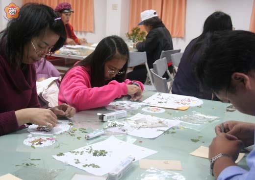 春節期間,從初一到初三,加上初五,林務所一共辦了五場的壓花體驗活動。一式的花材,配上巧思,經排列組合後,就可以出現萬種花樣。 林務所的壓花體驗邀請金門農工園藝科主任劉溪丁提供指導。參加者用美麗的花材,排列出自己認為最賞心悅目的圖案。他們手弄壓花,創意無限;臉泛笑靨,樂而不厭! 活動提供的花材以蕨類、菊科植物和蕾絲花為多。劉溪丁表示,壓花用的花材,單瓣比複瓣合適;水分少的比水分多的合適;體積越小越合適。 在活動期間,林務所供應的是經由代工做成的現成花材,參加者只要發揮排列組合的功夫,就可以展現美感。用心的人,左擺右移,百試不厭;要做到自我認可的完美地步,還真得花不少精神。 在金門農工職校,也有花卉利用的課程,課堂中會訓練學生用自己培植的花卉,完整地學習壓花創作。傳統的壓花方式是用報紙,但時間要很長;如今則可藉助微波爐壓花板,快速達到乾燥的效果。 劉溪丁表示,金門本地適合用來製做壓花的花材有:蕨類、日日櫻、八仙花、藍星花、細葉雪茄花、石竹等。 參加林務所壓花活動的民眾,有些是從臺灣回來過年的鄉親。一位旅居在南投的金門東村婦女,帶著三個小孩子參加了壓花的活動。她希望讓自己的寶貝女兒回金門唸大學(她的女兒曾經上過雜誌),由此可見對於金門的環境,這位媽媽是很喜愛的;不過,她認為,每年回到金門,只覺得樹木越來越少,希望鄉親能珍惜已有的綠化成績:::。 參加壓花的民眾,也有一位連續三年都報名錄取的幸運兒;她樂此不疲,但卻比較喜歡立體形式的壓花飾品。今年提供的是比較平面的杯墊和餐墊。 人心會不由自主地趨近自然,人工卻會不由自主地偏離自然。把自然界的花卉,變成壓花,就可以延長自然之美,並在死氣沈沈的人工環境中,保留一些人心所嚮往的自然,在這裡就顯現出了人文氣息。 壓花可用來做相框、杯墊、鑰匙圈、文鎮、餐墊:::等,在生活中,藉由美感的經營,可以去除呆板,釋放壓力。林務所的壓花體驗活動越來越搶手;如果壓花藝術值得推廣,不應該只靠林務所推廣,學校、社團、社教機構,可以一起把它發揚光大,而且應該要有進階學習的機會,而不是滿足於半成品的排列組合;研習時間的安排也不一定要擠在過年。