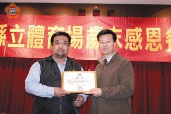 「金門縣體育歲末年終感謝餐會」昨日盛大舉行,縣長李炷烽親自到場向體育界的好朋友問好,並且轉頒本縣榮獲「國民體能檢測績優」、「運動環境最友善的城市」與「最喜歡運動的城市」等績優獎牌,李炷烽表示,金門雖然是彈丸小坵,但表現卻是體育大縣,希望大家繼續努力,讓金門可以揚威國際。 「金門縣體育歲末年終感謝餐會」昨日晚間六時三十分假盈春閣餐廳舉行,包括縣長李炷烽、金門縣體育會理事長王異生、教育局長李再杭、金門體育場主任許換生與地區各單項體育委員會主任委員都到場參與。而金門國家公園管理處長黃文卿、金酒公司總經理王毅民、中華民國田徑委員會秘書長王景成、中華晨泳北區會長張新龍、水漾運動用品公司董事長林自發等人也應邀到場同樂。 李炷烽在致詞時首先對地區各體育委員會的幹部表示感謝,強調因為他們的努力,讓地區的體育發展可以一日千里,屢獲殊榮,他說,金門雖然是彈丸小坵,但卻是體育大縣,尤其又獲得「國民體能檢測績優」、「運動環境最友善的城市」與「最喜歡運動的城市」等績優獎牌,整體評比成績堪稱是全國第一,希望大家繼續努力,讓金門可以揚威國際。 許換生也說,千萬個感謝,感謝地區體育界好朋友的努力,而今獲得的種種榮譽,都是屬於大家。 昨日的感恩餐會,由李縣長分別頒獎表揚「九十五年度運動人口倍增計畫績優單位」,獲得的委員會有:金門體育會籃球運動委員會、金門體育會桌球運動委員會、金門體育會羽球運動委員會、金門體育會田徑運動委員會、金門體育會跆拳道運動委員會。 此外,李縣長也轉頒行政院體委會表揚本縣辦理九十五年度運動人口倍增計畫績優獎項:「全國特優單位」|金門體育會太極拳運動委員會。 「全國績優單位」|金門體育會游泳運動委員會、金門體育會元極舞運動委員會、金門體育會慢速壘球運動委員會、金門縣體能有氧舞蹈協會。 整個晚會氣氛相當熱絡,張新龍還一時興起,上台演奏薩克斯風,以一曲「思慕的人」,風靡全場,而多位好歌喉的體育界好友,也輪番高歌一曲,氣氛HIGH到不行。