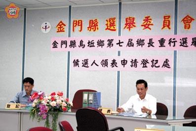 金門縣烏坵鄉第七屆鄉長重行選舉,訂於九十五年十二月二十三日舉行投票,昨日起並在金門縣選舉委員會受理領表,首日領表則是「等嘸人」,領表日期將到十一月二十八日止,並於十一月二十六日至二十八日,在金門縣選委會受理候選人登記。 第七屆烏坵鄉鄉長蔡元珍因選舉「幽靈人口」案,被法院二審判決當選無效定讞,金門縣選舉委員會並已發布重行選舉公告,十二月二十三日將舉行投票,產生新鄉長。 烏坵鄉長重行選舉投票日期為十二月二十三日,投票時間為上午八時至下午四時。十一月二十六日至二十八日,則在金門縣選委會受理候選人登記。 金門縣選委會表示,烏坵鄉第七屆鄉長蔡元珍因引進「幽靈人口」妨害選舉結果,遭福建高等法院金門分院二審判決當選無效定讞並解職,因而鄉長必須重行選舉。 根據金門縣選委會初步統計,截至今年十月底,烏坵鄉選舉人數為三百六十一人,但常住人口約僅五十人左右,為推動相關業務,金門縣政府核派代理鄉長黃奕焮前往上任,也將主持選務工作。 烏坵鄉第七屆鄉長重行選舉,應選出名額一人,競選經費最高限額新台幣二百萬三千元。而候選人競選經費最高限額依投票前六個月(即九十五年六月份各鄉鎮人口數計算)。應繳納保證金為新台幣十二萬元整。至於金門縣烏坵鄉第七屆鄉長重行選舉期間,自九十五年十一月一日至九十六年一月十五日止,為期二個半月。 至於受理領表日期自九十五年十一月廿二日至廿八日,每日上午八時起至十二時,下午一時三十分起至五時三十分止(如逢星期例假日照常辦公),受理候選人登記則於十一月廿六日至廿八日,地點均在金門縣選委會會議室受理。至於選舉投票日為九十五年十二月廿三日在烏坵鄉各村投票所舉行。 烏坵鄉是位於金門東北方七十二海里、中國大陸湄洲灣外,由面積約一點二平方公里的大坵、小坵兩島組成,與金門沒有交通工具往來,鄉民對外交通是靠每個月三航次往返台中港軍方運補艦,十分不方便。 金門縣烏坵鄉第七屆鄉長重行選舉,金門縣選委會所研擬的選舉重要時程,主要為:十二月三日完成選舉人名冊編造;審定候選人名單及通知抽籤;十二月八日候選人抽籤決定姓名號次;十二月七日至十一日選舉人名冊公告閱覽;十二月十二日公告候選人名單及競選活動期間;公告候選人助選員名單;十二月十三日至十二月二十二日競選活動期間;十二月十三日前完成選舉公報印製;十二月十六日前完成選舉票印製;十二月十九日公告選舉人人數;十二月二十三日投票日;十二月二十五日候選人得票相同抽籤;十二月二十八日前審定當選人名單;十二月二十九日公告當選人名單;九十六年一月八日前發還保證金;一月八日前寄發候選人在每一投票所得票數表;一月十日前致送當選證書;一月十八日前通知候選人領取得票補貼。