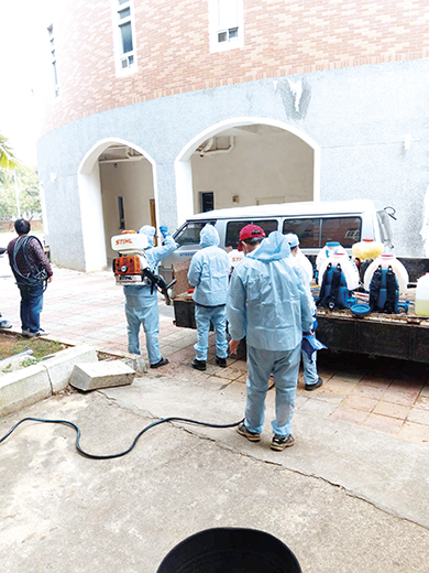 金寧動員清潔隊 昨協助金大消毒校園